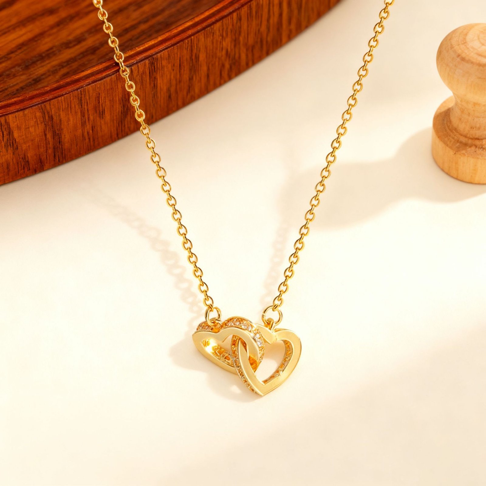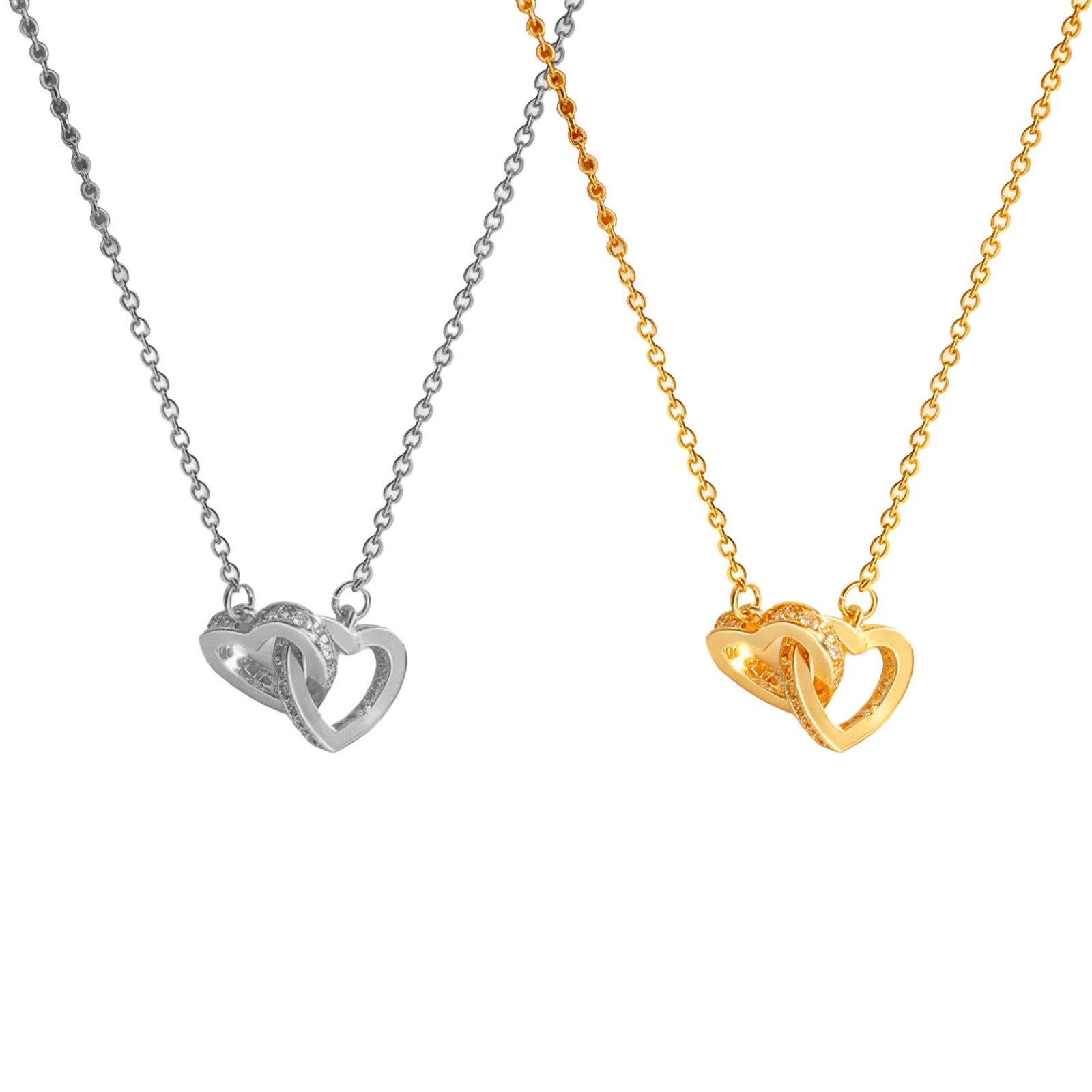 18K Gold Interlocked Hearts Necklace ✧ Tarnish-Free Waterproof Titanium Steel with Zircon Pavé • Forever Love Locked Hearts Pendant • Everyday Romance!