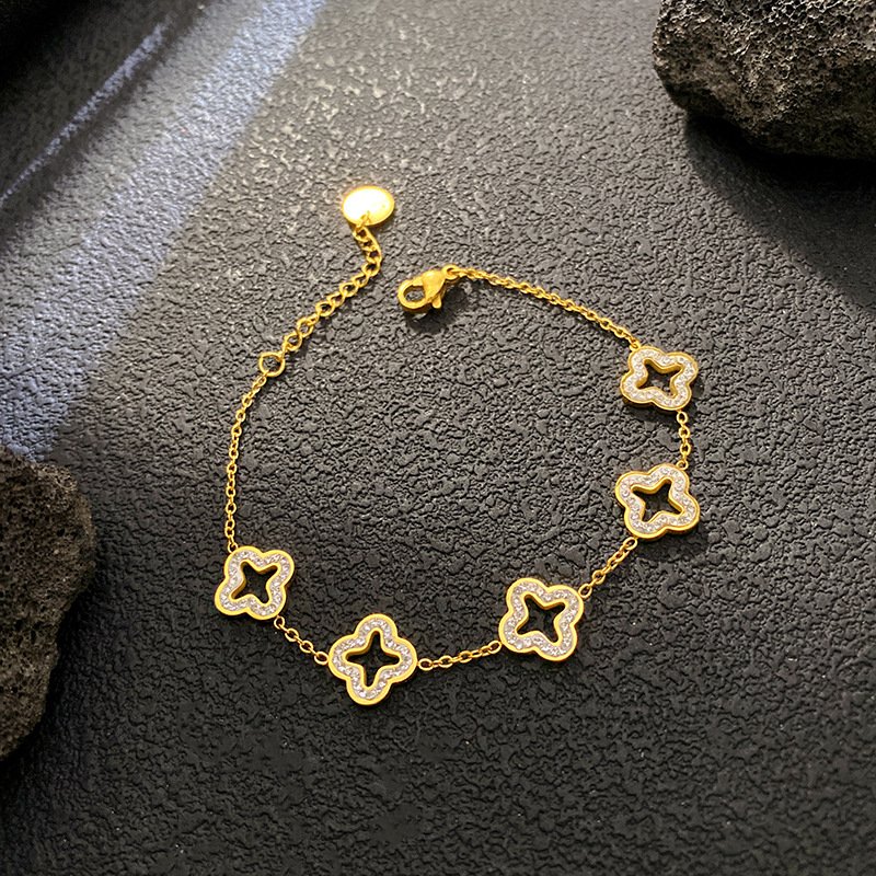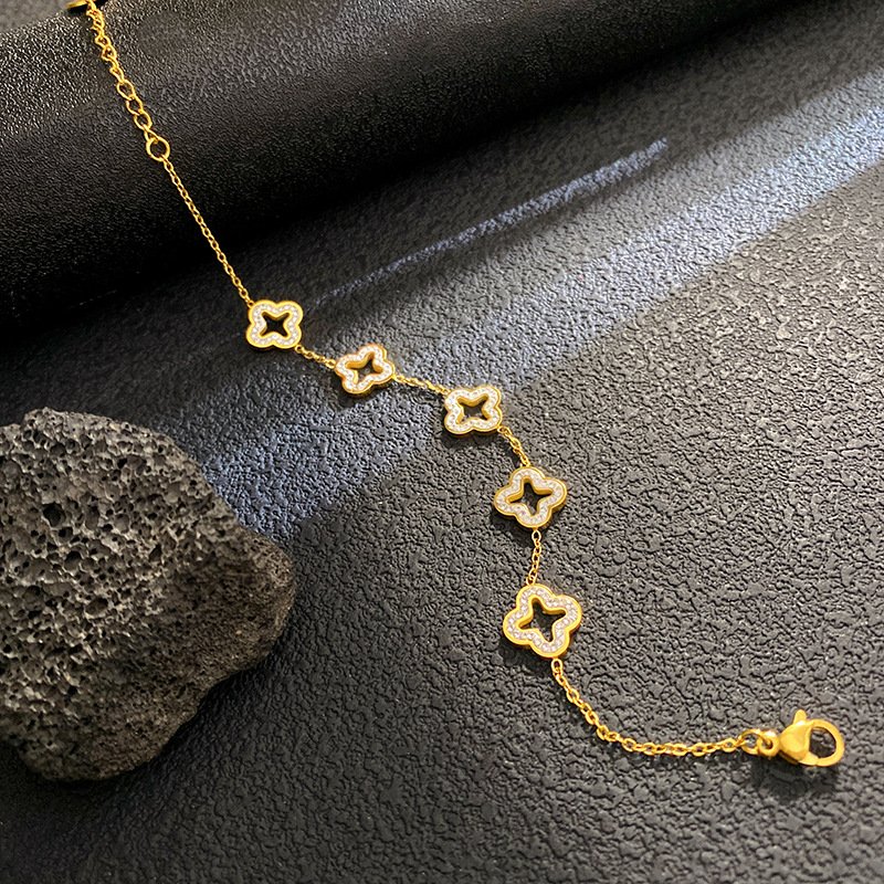 Bring endless good luck straight to your wrist with HEYBIJOU’s Lucky Clover Sparkle Chain Bracelet! This exquisite 18K gold-plated titanium steel piece features a series of stunning hollowed four-leaf clovers – each one intricately openworked and generously filled with dazzling cubic zirconia that catches light like scattered diamonds. The delicate chain flows effortlessly between the clovers, creating a light, feminine, and utterly captivating look that’s both whimsical and wildly luxurious. Perfectly balanced for everyday wear yet special enough for any occasion!