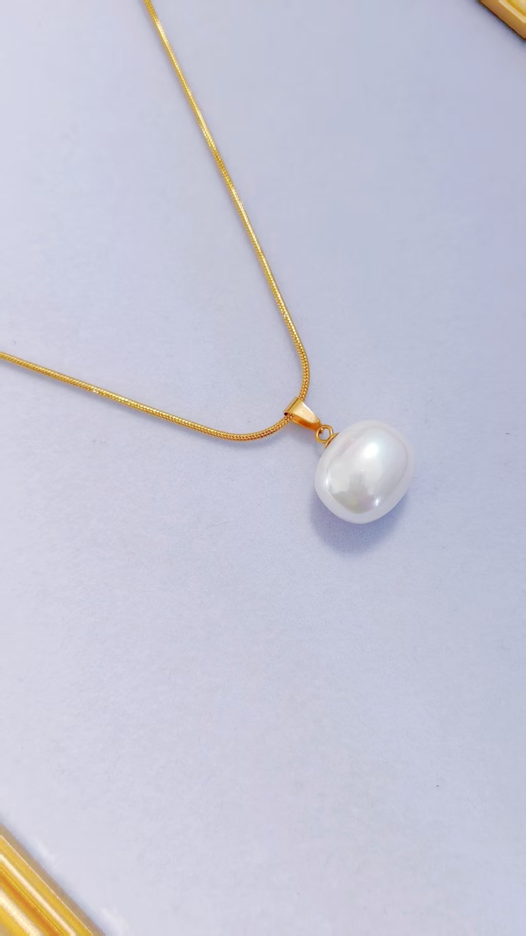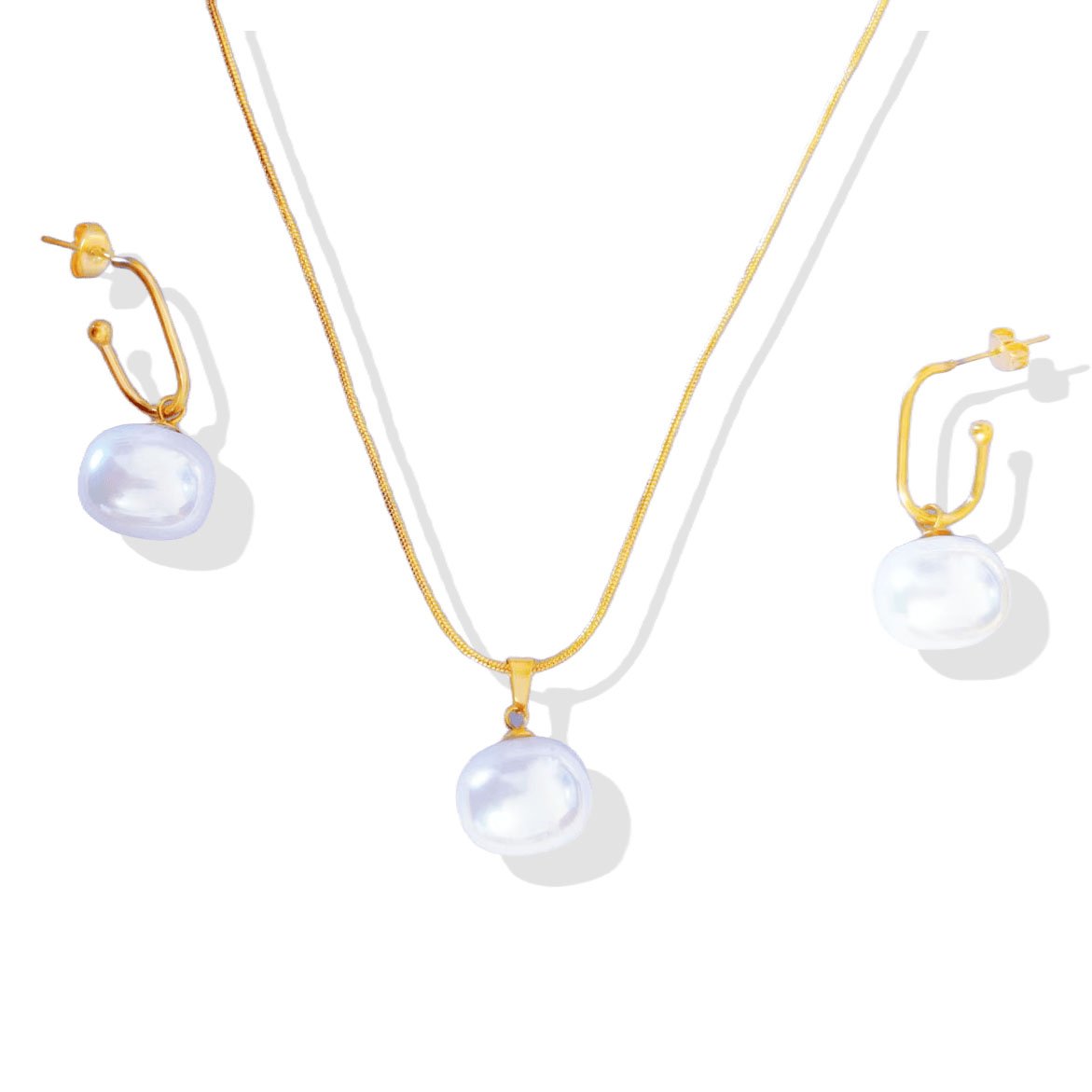 Glow effortlessly with HEYBIJOU’s Luminous Pearl Set: 18K gold-plated mother-of-pearl necklace & hoops! Tarnish-free, water-resistant luxe radiance