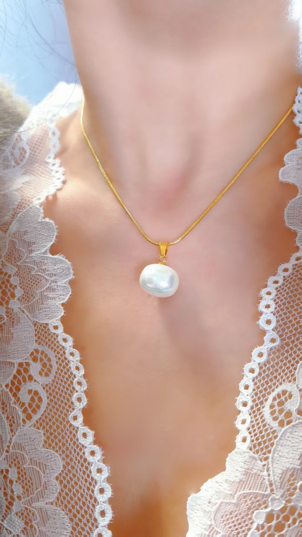 Illuminate your entire look with HEYBIJOU’s Luminous Pearl Glow Set! This breathtaking 18K gold-plated titanium steel duo features a mesmerizing high-gloss mother-of-pearl pendant – large, organically shaped, and glowing with soft, iridescent depth that shifts beautifully in every light. Paired with elegant gold hoop earrings that each cradle a matching luminous pearl drop, the set creates an instantly polished, high-fashion moment. Delicate yet bold, it drapes with effortless grace and adds that coveted “just-back-from-the-coast” sophistication to day dresses, evening wear, or your favorite white tee!