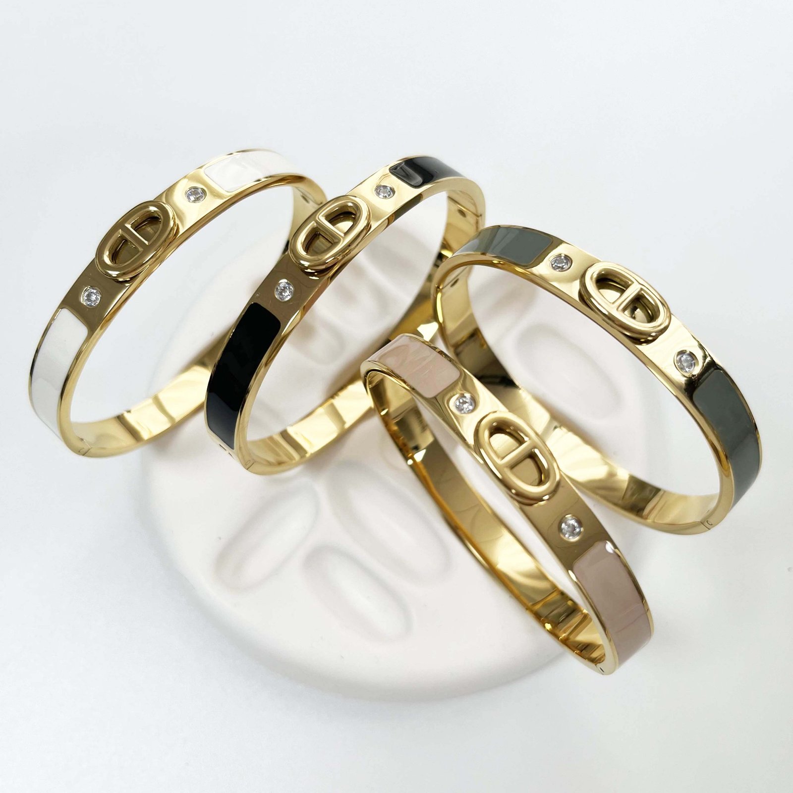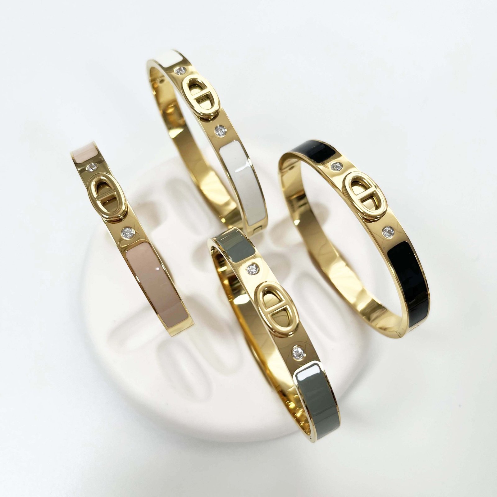 Discover the Marina Elegance Bracelets: 18K gold-plated, marina symbol, four colors, tarnish-free, and water-resistant. Luxurious and stylish jewelry for any occasion.