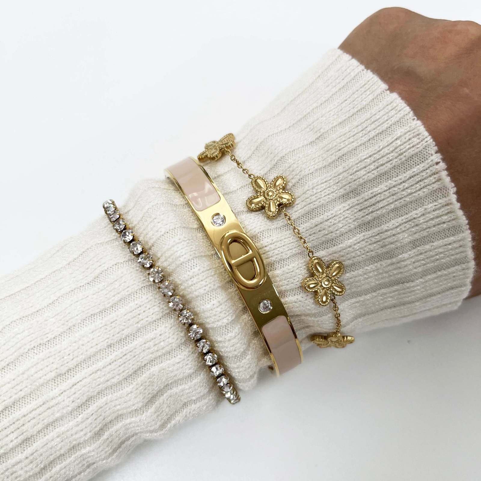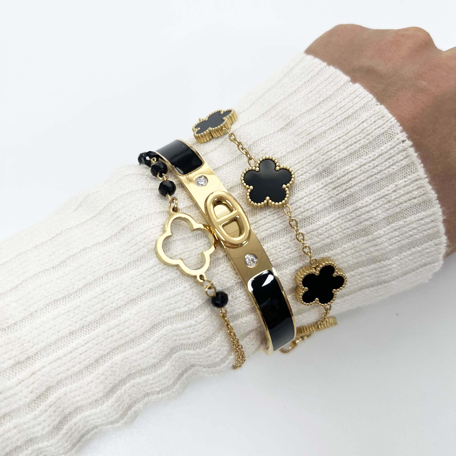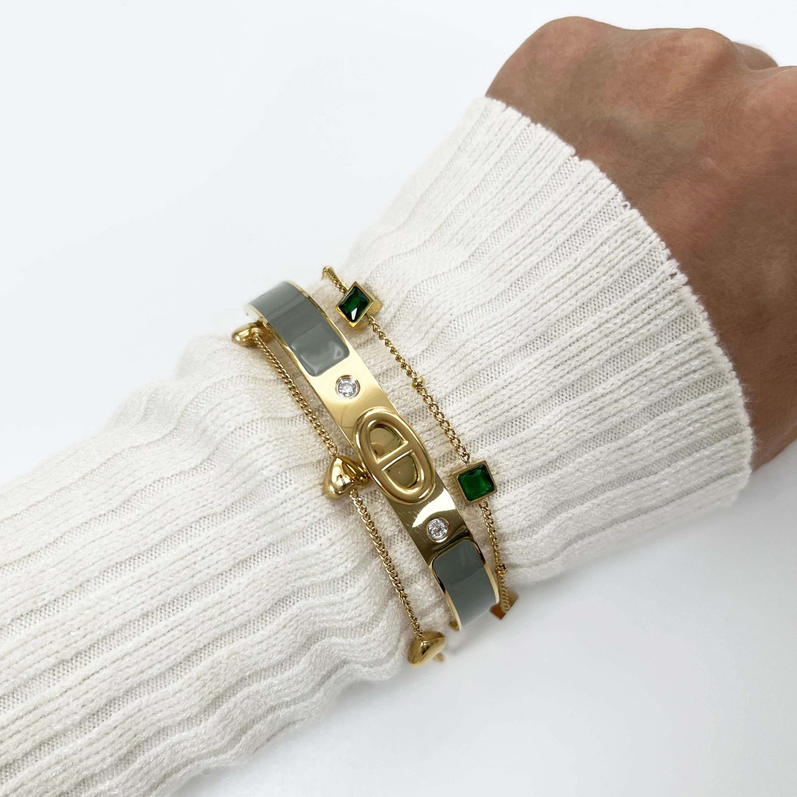 ✨ Nautical Sophistication: Introducing the Marina Elegance Bracelets, a collection of luxurious bracelets that bring a touch of maritime charm to your accessory collection. Crafted from high-quality titanium steel and plated with 18K gold, these bracelets exude a luxurious shine and elegance, perfect for any occasion.