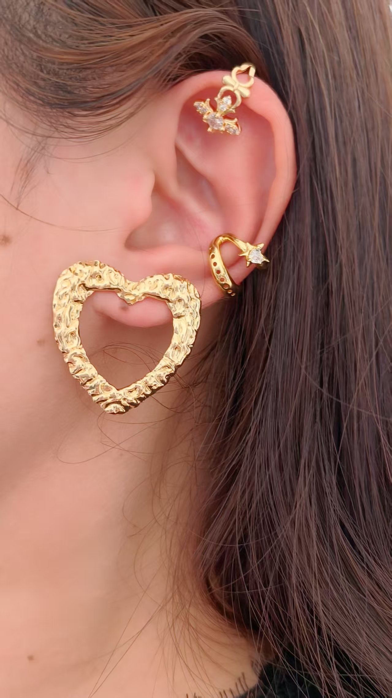 • The open cuff design requires zero piercings — it clips onto the cartilage, helix, or upper lobe with ease and holds securely all day