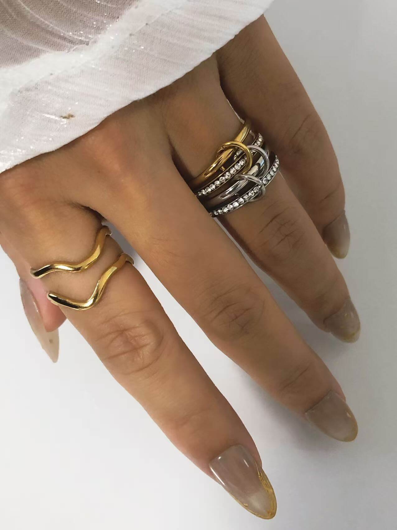 4-piece gold & silver stackable rings set with CZ crystals. Tarnish-free titanium steel. Water-resistant luxury jewelry. Sizes 6-10. Shop now!