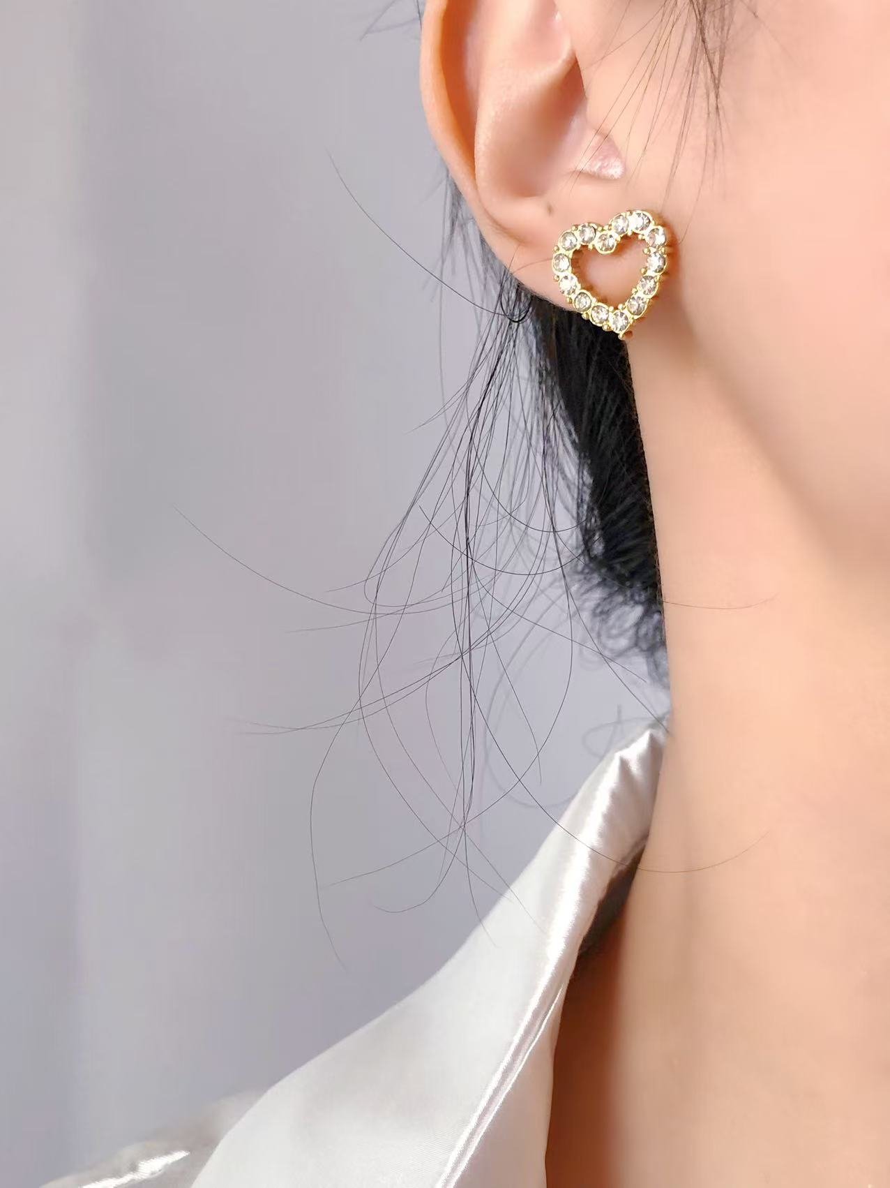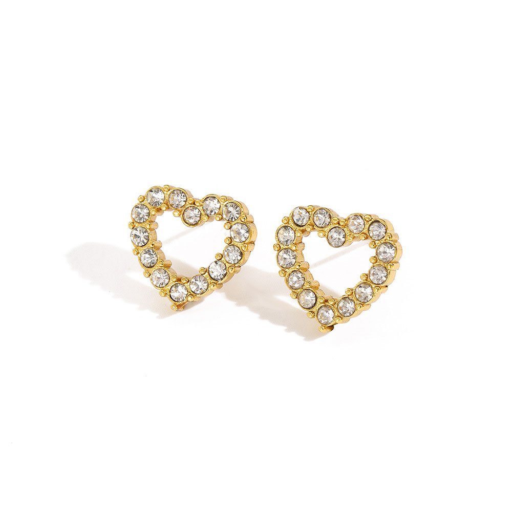 At 1.5 x 1.6cm, these heart studs strike the ideal balance—substantial enough to showcase beautiful sparkle and detail, yet delicate enough for comfortable everyday wear. The dimensional construction creates depth and allows light to play through the crystals from multiple angles, enhancing their brilliance. Crafted from premium titanium steel with luxurious 18k gold plating, these earrings feature quality construction that feels both lightweight and substantial.