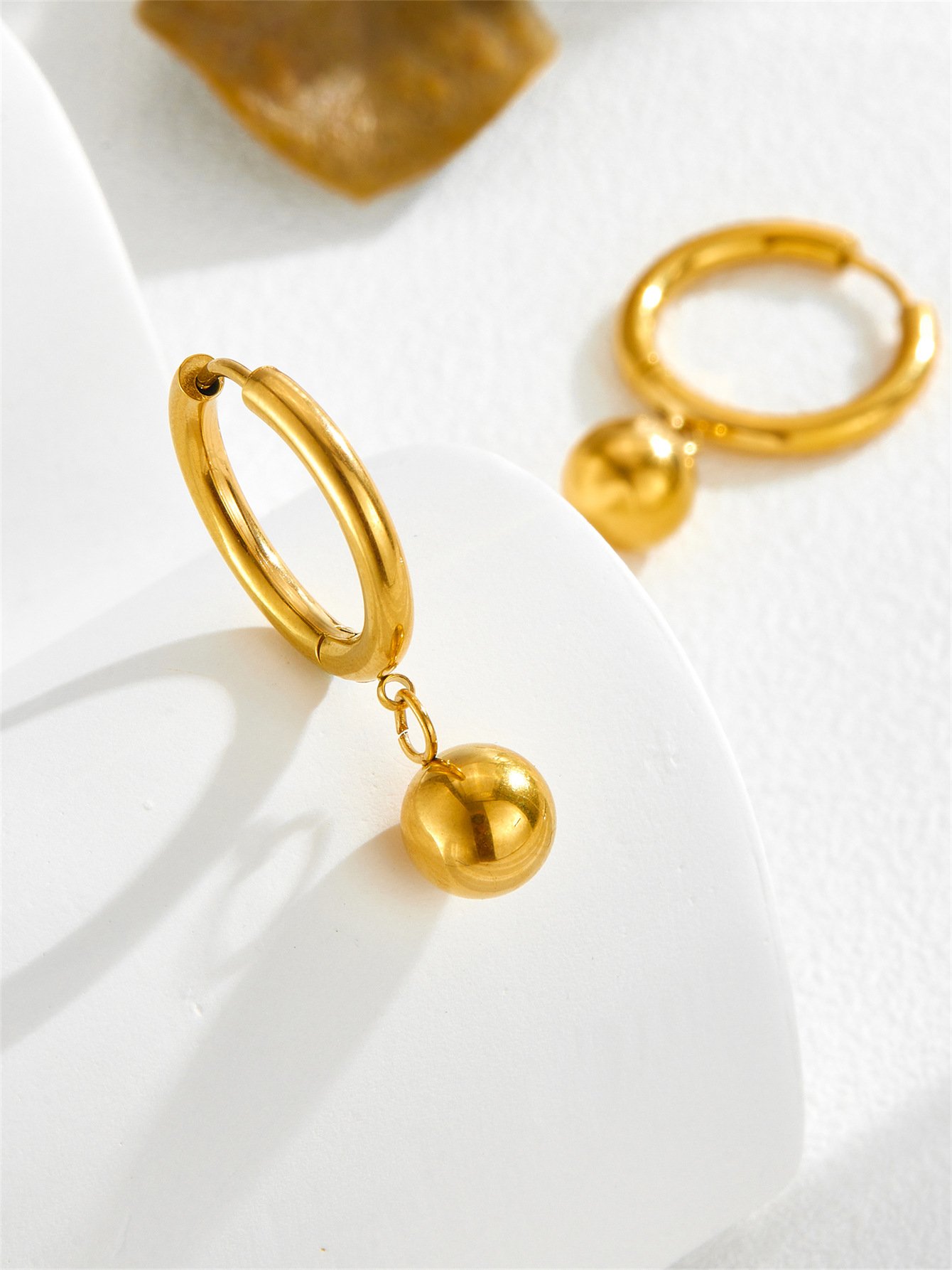 The ball hangs freely from its connecting ring, which means it sways independently with every movement — swinging slightly as you walk, catching light from new angles as you turn your head, settling back into perfect stillness when you stop. It’s a kinetic quality that makes these earrings feel alive and dynamic in a way that fixed studs simply cannot replicate. Once you wear them, you’ll understand immediately why this design is so universally beloved.