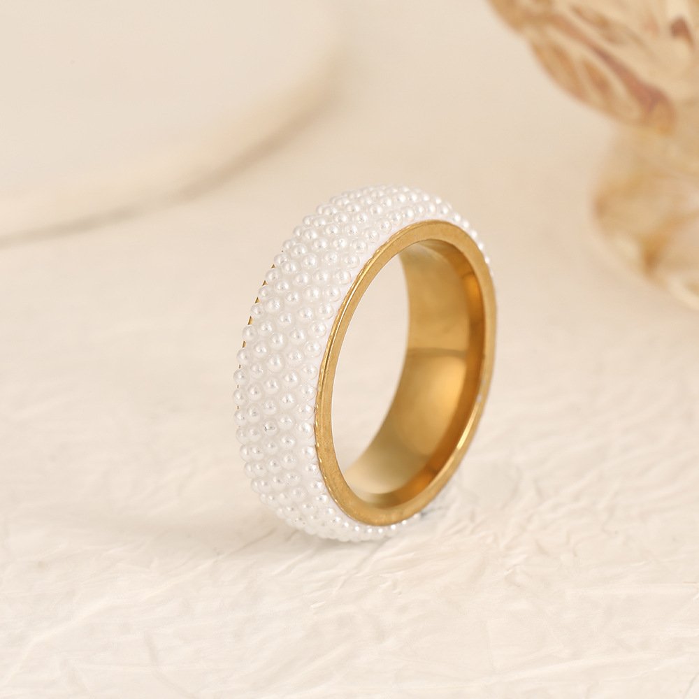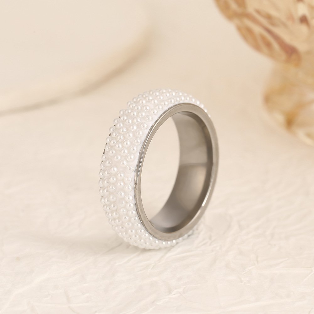 Shimmer luxuriously with our tarnish-free Pearl Bubble Wide Band Ring (18K gold or silver plating)—titanium steel, full pearl coverage, sizes #6–#10 for opulent elegance!