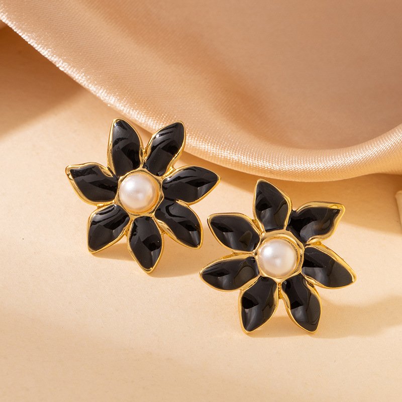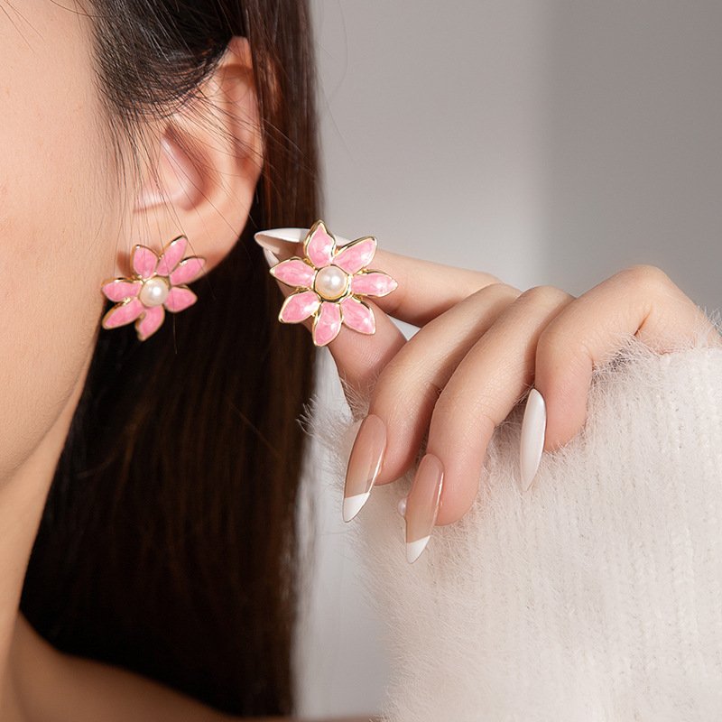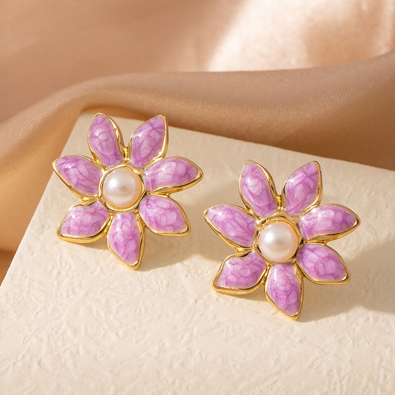 Pearl Center Enamel Blossom Studs