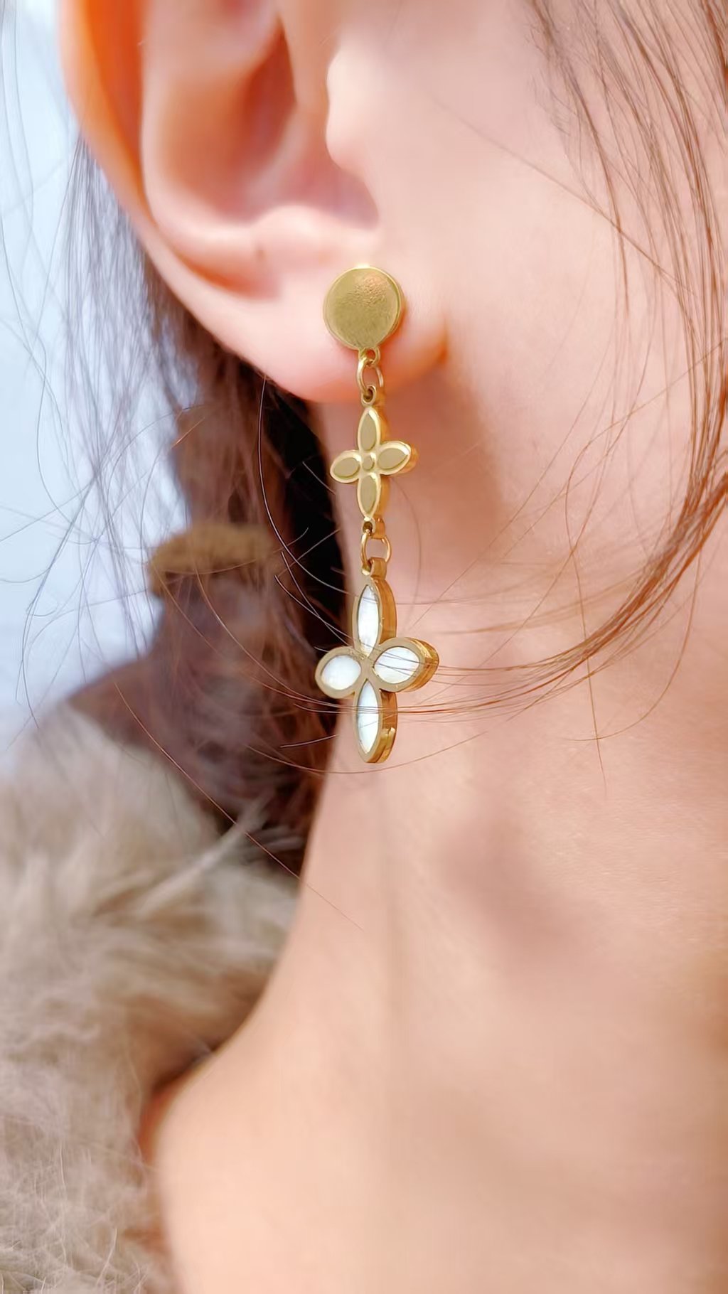 Built on a solid titanium steel core, these earrings are completely tarnish-free, fully water-resistant, and safe for sensitive ears. The 18K gold stays warm, the pearl inlays stay luminous, and the whole piece holds its beauty through daily wear, water, and every season. Jewelry that truly goes the distance.