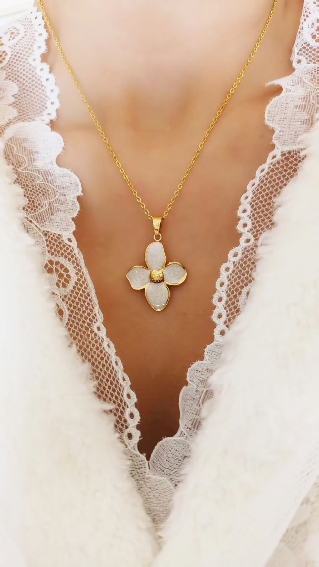 Bloom with elegance wearing our enchanting Pearl Flower Jewelry Set! This delightful collection features delicate four-petal flower designs with luminous mother of pearl inlay, beautifully framed in radiant gold. The set includes a graceful pendant necklace and matching stud earrings, creating a perfectly coordinated look that’s both feminine and sophisticated. Each petal showcases the natural iridescence of genuine mother of pearl, catching light with soft, ethereal shimmer that’s absolutely captivating!