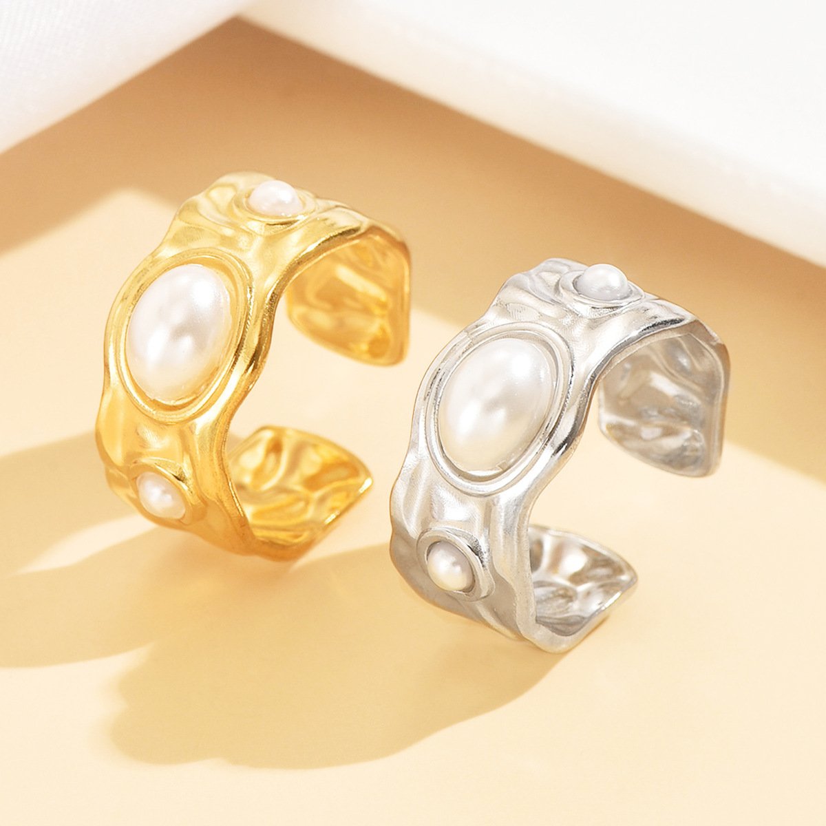 Expertly crafted from superior titanium steel with your choice of luxurious 18K gold or sophisticated silver plating, this ring showcases exceptional artisan quality. The intentionally irregular surface creates depth, dimension, and visual intrigue that catches light from every angle, while the genuine pearls add their signature soft glow and timeless elegance. The substantial wide band makes a confident statement without compromising comfort. And here’s the absolute best part: this stunning ring is completely tarnish-free and water-resistant! Wear it through everything – washing dishes, swimming, working out, showering – and it stays absolutely pristine. No polishing, no babying, no worries. Just grab-and-go beauty that keeps up with your active lifestyle while looking perpetually perfect!