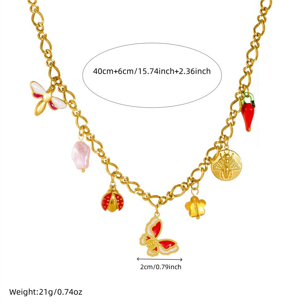 Buzz into bliss: HEYBIJOU Pollenburst Enamel Charm Necklace—vibrant butterfly, bee & ladybug dangles on 18K gold titanium. Tarnish-free, water-proof garden magic!