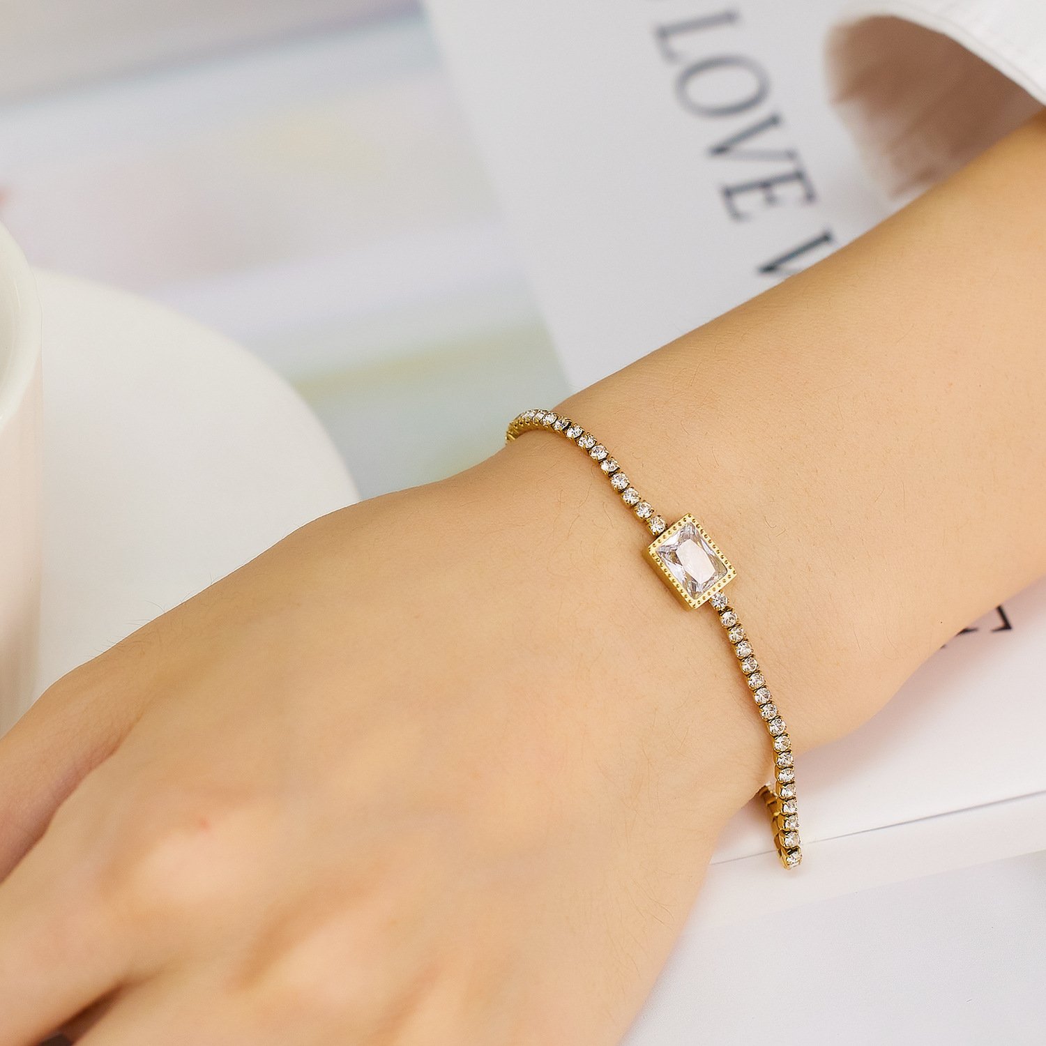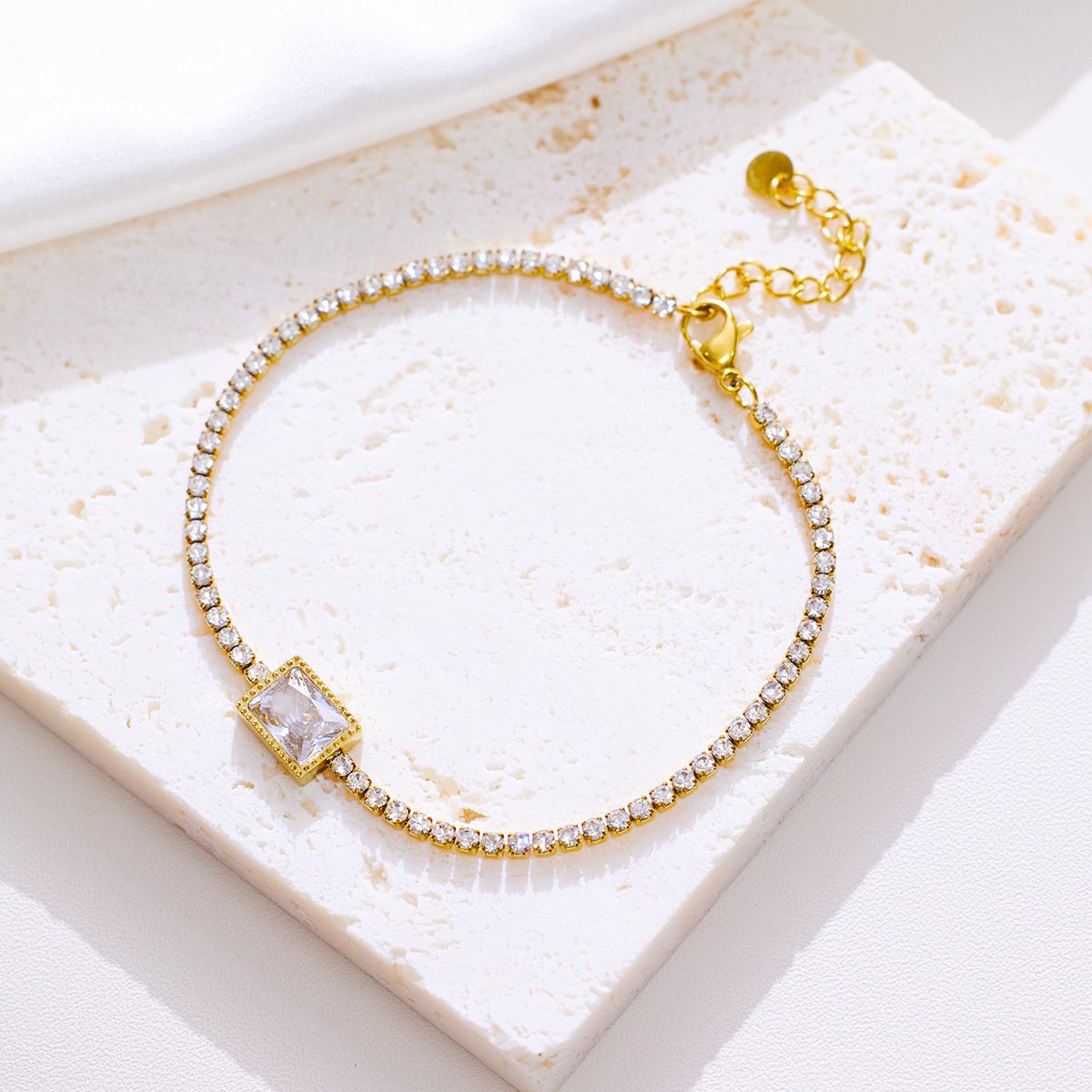 HEYBIJOU’s Radiant Rhapsody Tennis Bracelet: 18K gold-plated titanium steel with cubic zirconia. Classic elegance meets modern luxury. Tarnish-free, water-resistant. Elevate your style with timeless sophistication.