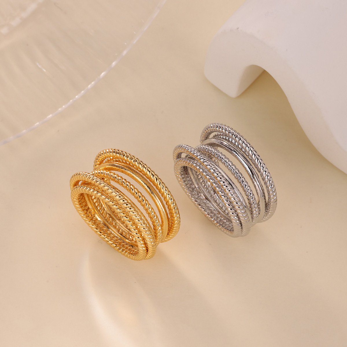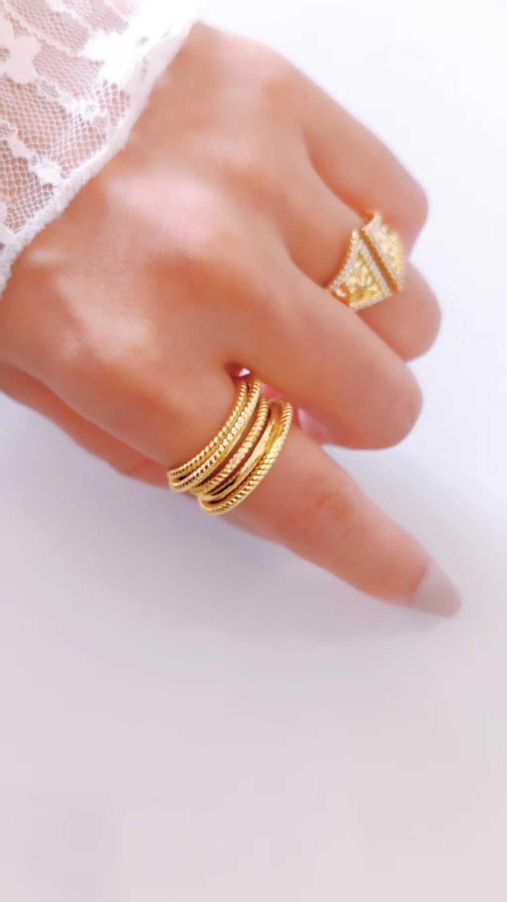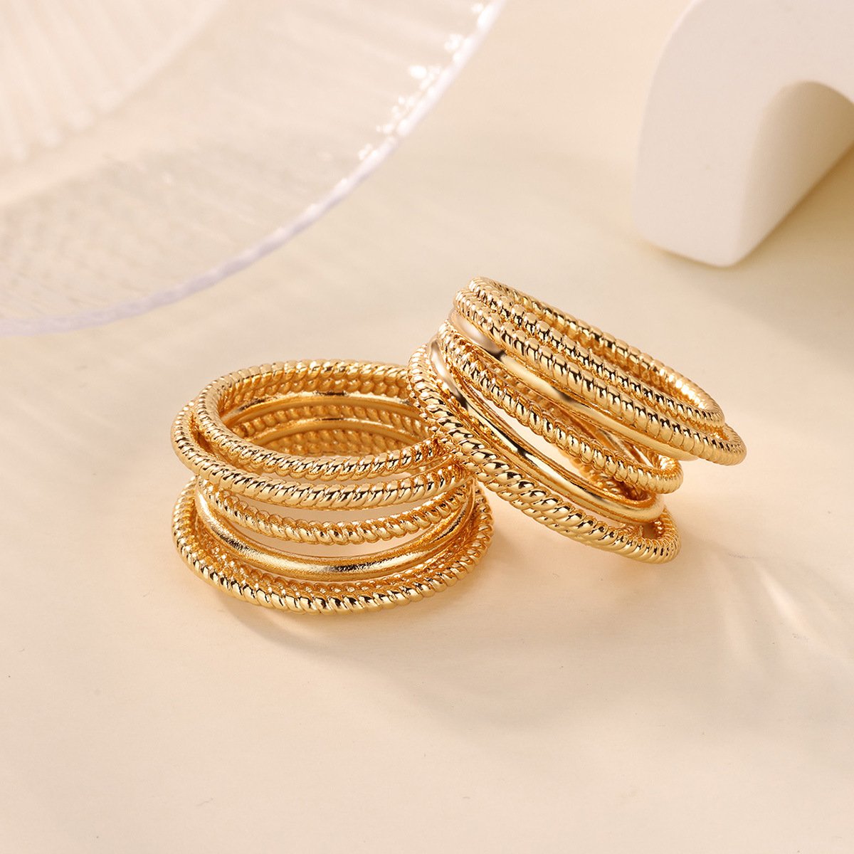 💛 Where Texture Becomes Art Seven bands means seven surfaces catching light simultaneously — and the rope twist detailing ensures every single one does so differently. The tightly wound spiral pattern creates a constant, shifting shimmer that no plain band could ever achieve. Up close it reads as intricate, handcrafted artistry; from across the room it reads as serious, unapologetic gold power. Both are entirely accurate.