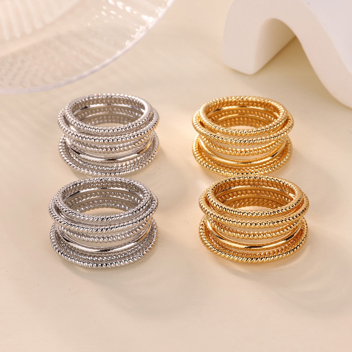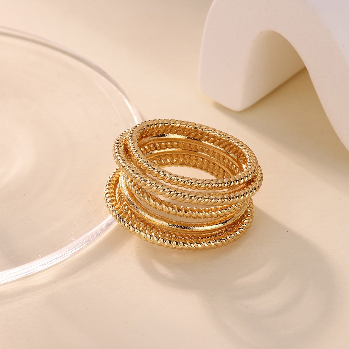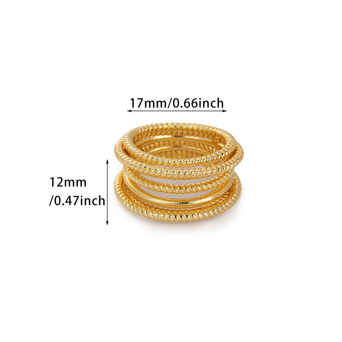 Seven-Layer Rope Twist Stacked Gold Band Ring