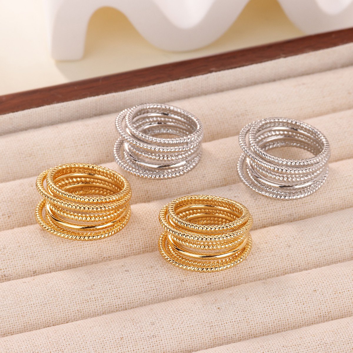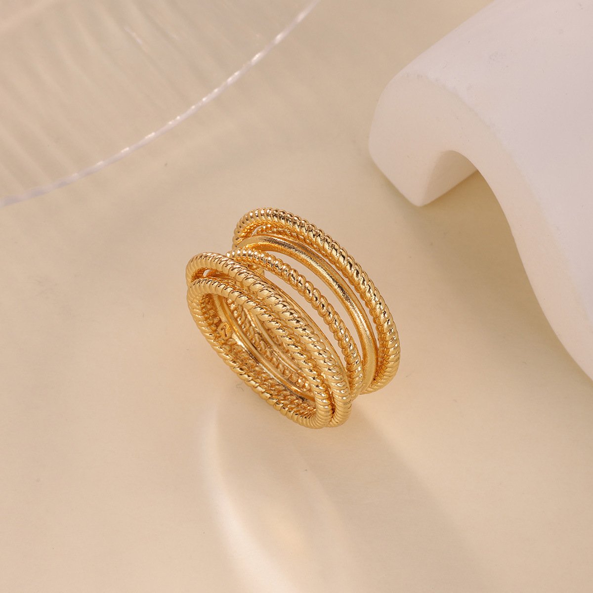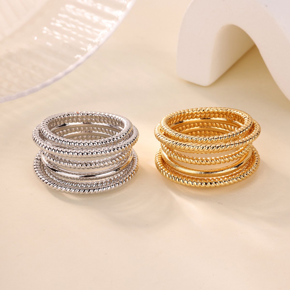 Seven-Layer Rope Twist Stacked Gold Band Ring