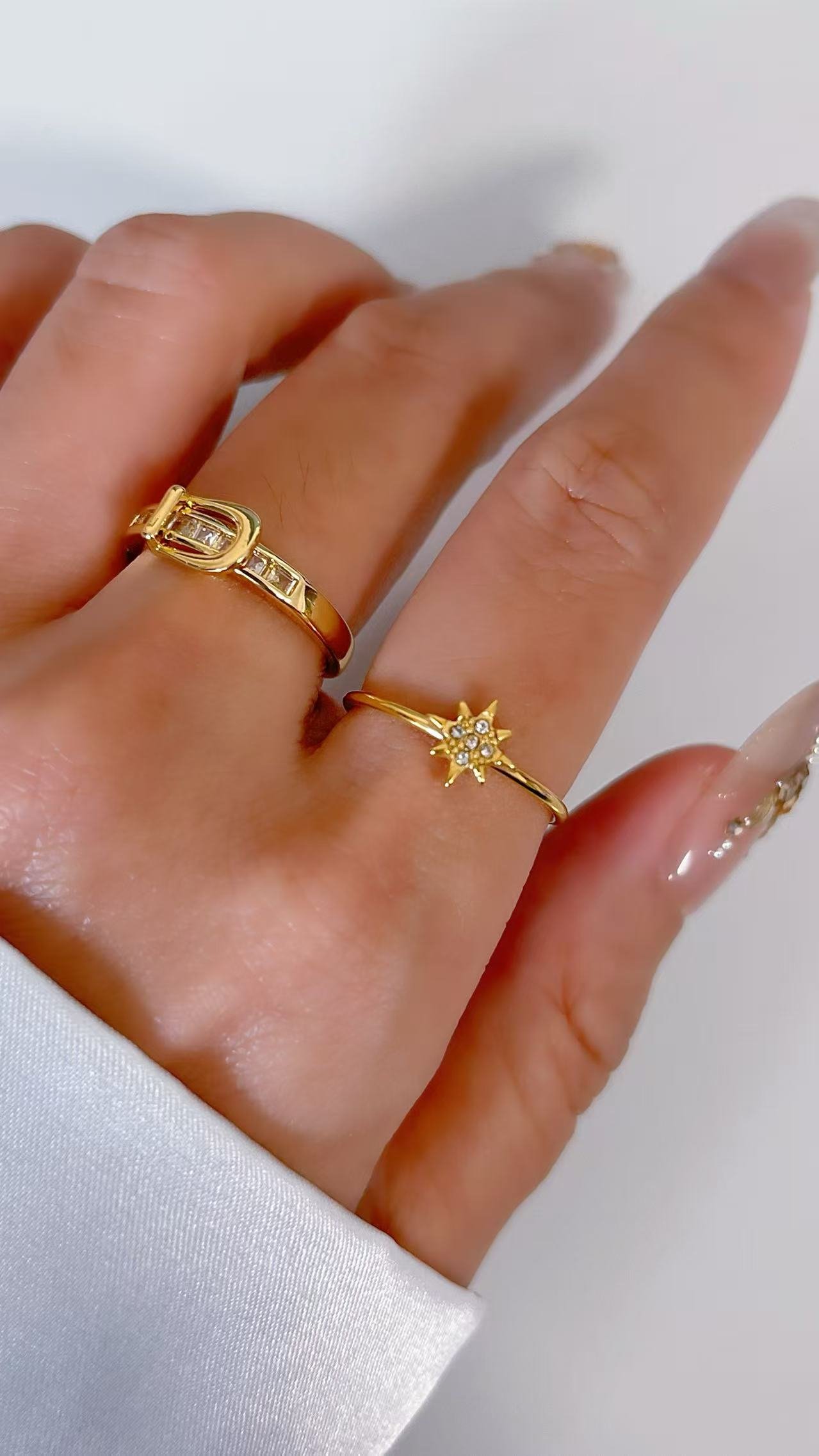 HEYBIJOU’s Stellar Flare Zircon Sunburst Cuff—18K gold titanium open ring with radiant ray inlays. Tarnish-free, waterproof sparkle for fingers orbiting in cosmic luxury!