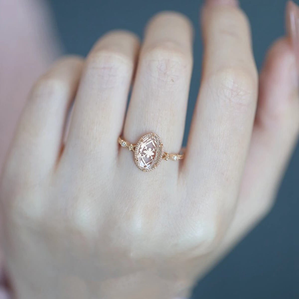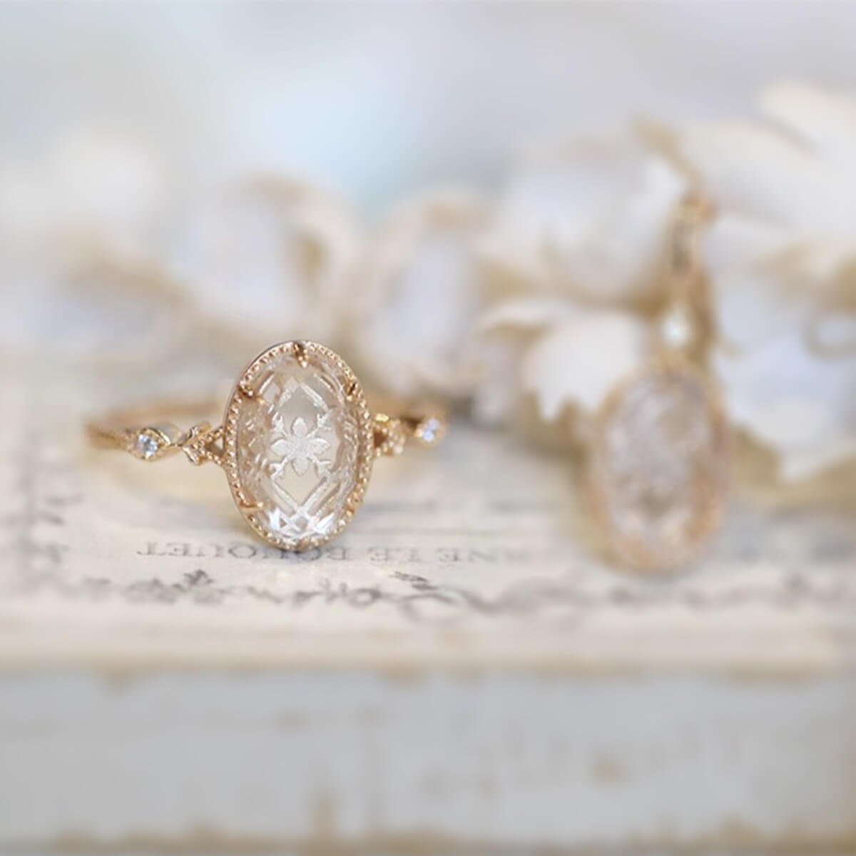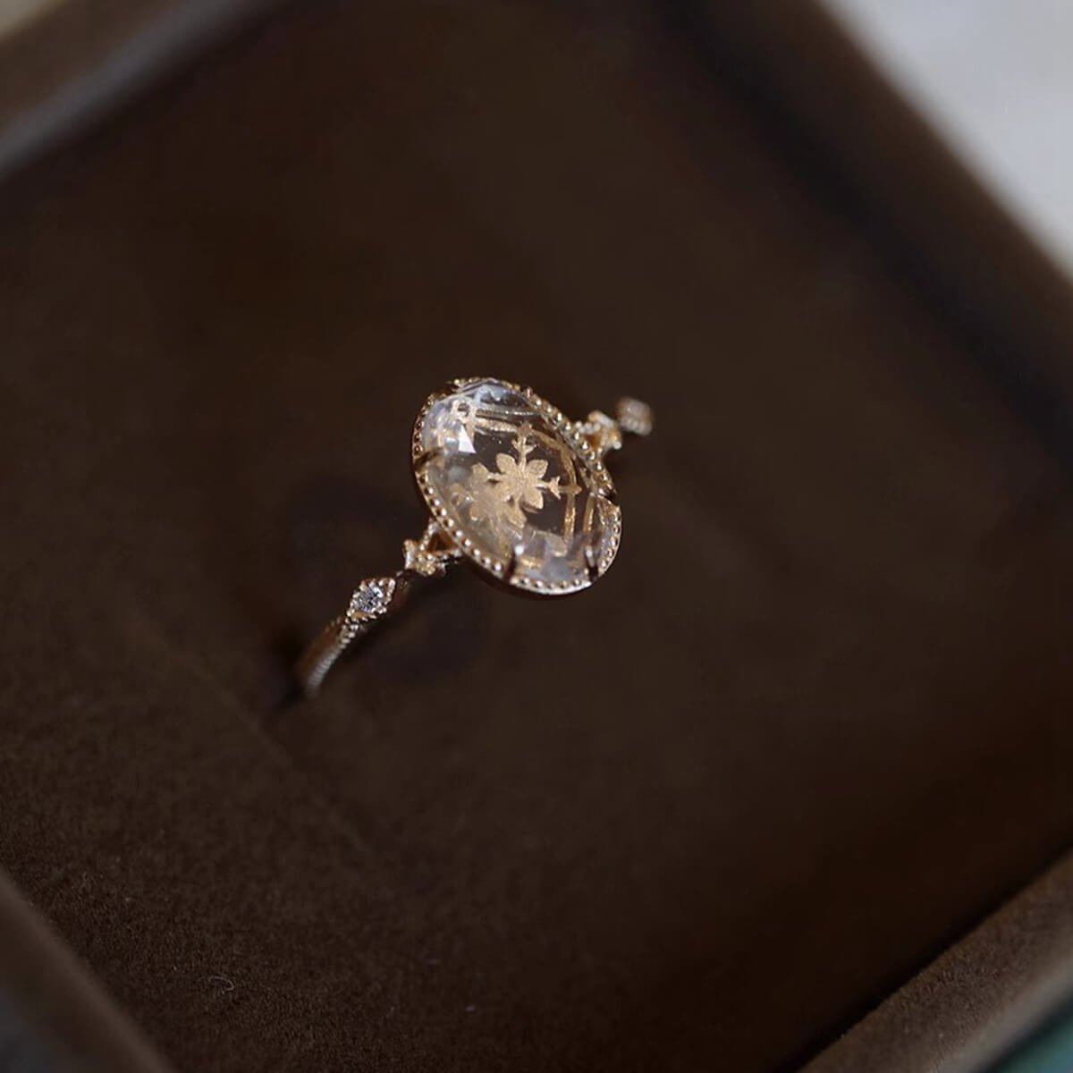 Crystal dome flower ring in sterling silver & 18K gold. Clear stone with CZ accents. Tarnish-free luxury jewelry. Sizes 6-10!