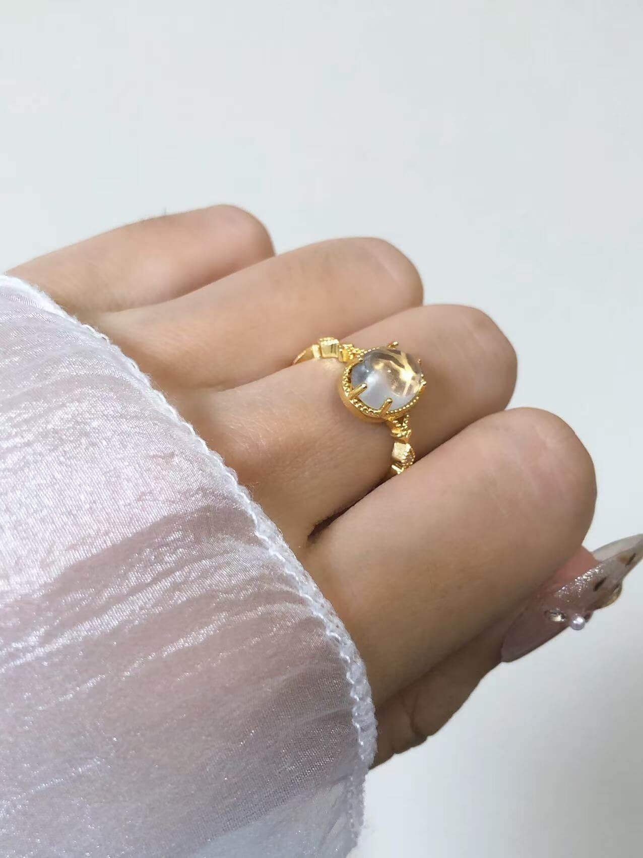Sterling Silver 18K Gold CZ Crystal Dome Flower Ring