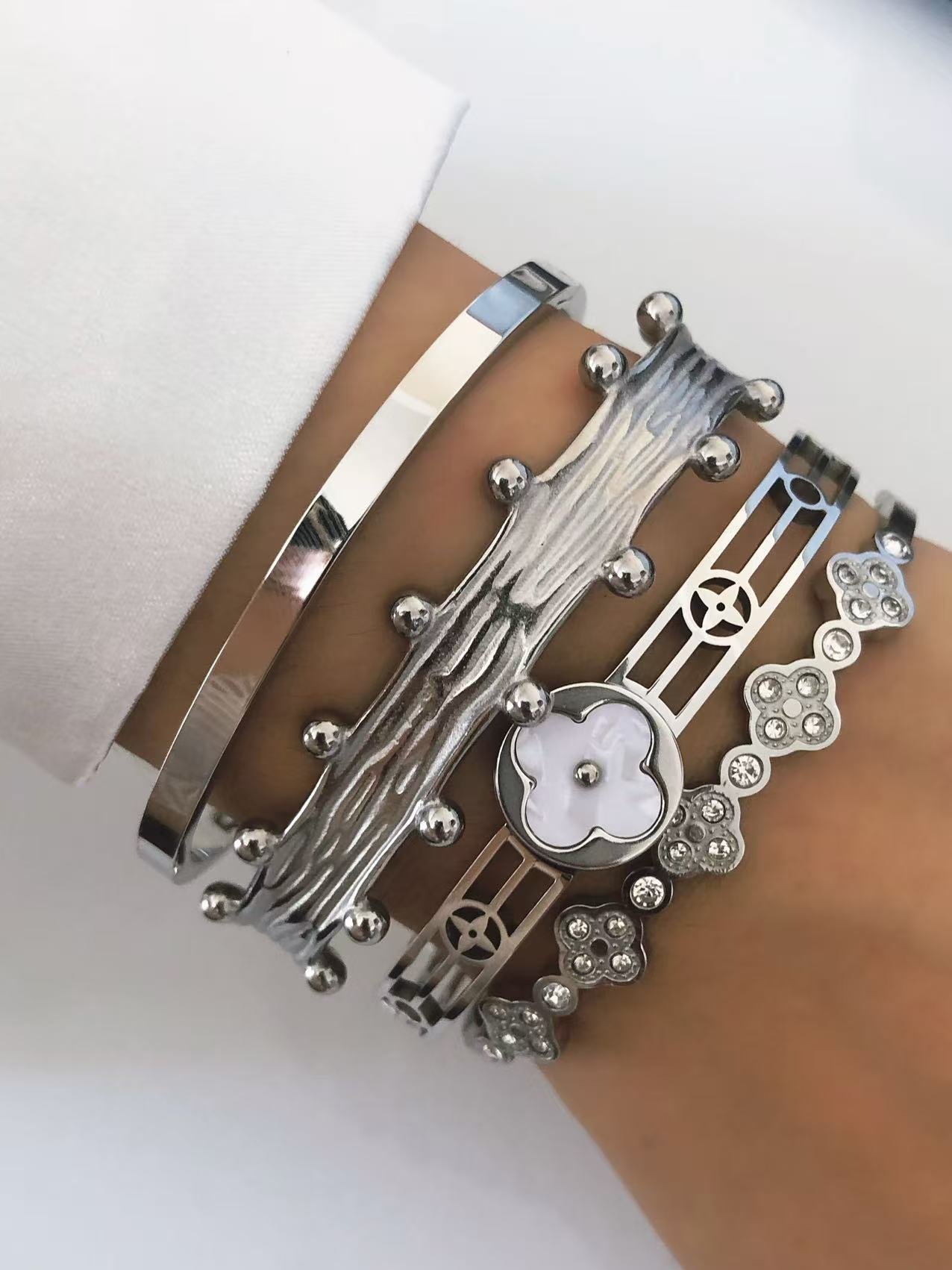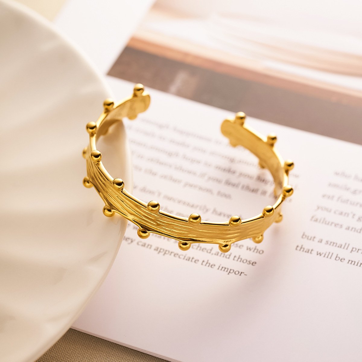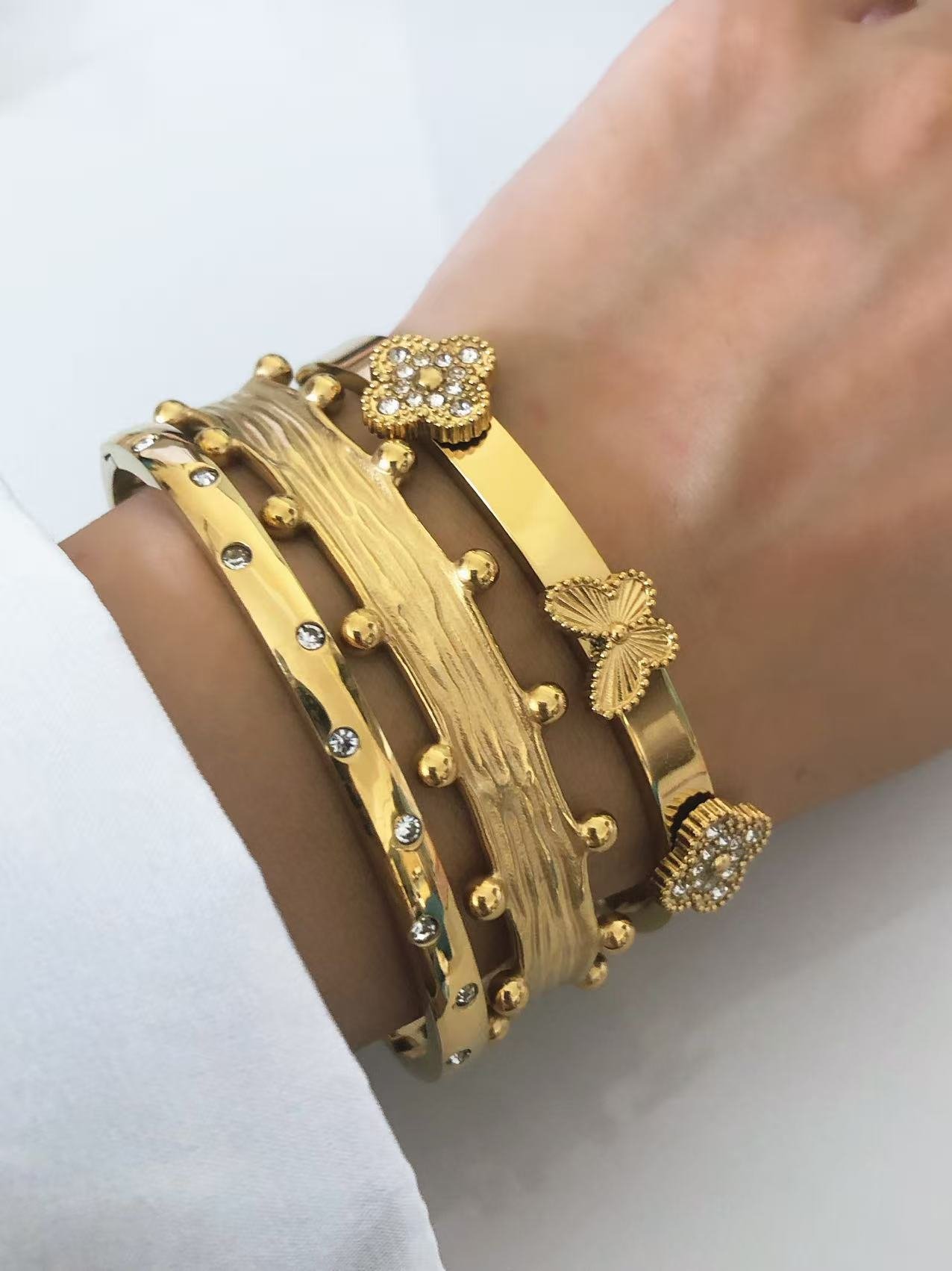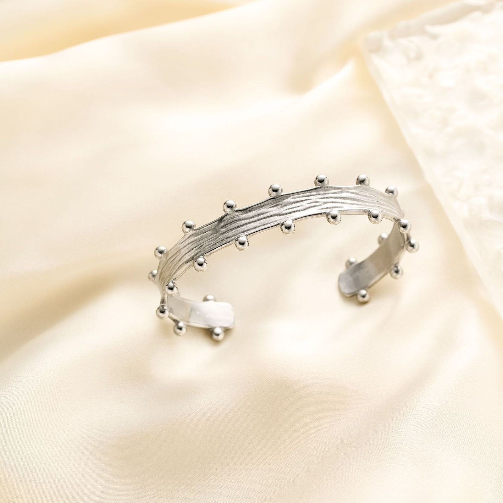 Stunning 18k gold/silver studded wire cuff bracelet. Tarnish-free, water-resistant. Modern sculptural design meets timeless elegance. Shop HEYBIJOU now!