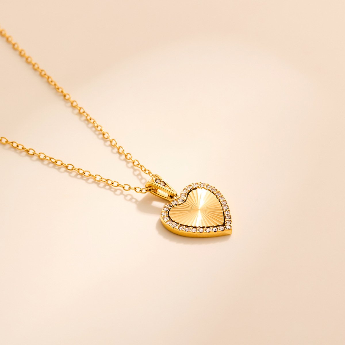 Introducing the HEYBIJOU Sunray Halo Pendant Necklace — a collection of five distinctive pendant shapes, each one sharing the same mesmerising design language: a deeply laser-engraved sunray pattern radiating outward from the center, framed by a continuous halo border of round pavé zircons that trace the pendant’s silhouette in unbroken, brilliant light. This is the pendant that glows from within and sparkles around the edges — an inner sun wrapped in stars, worn at your collarbone.