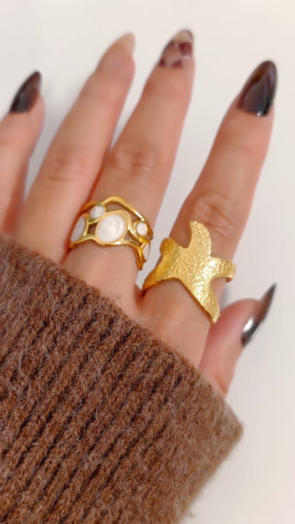 Crafted from ultra-durable titanium steel with rich 18K gold plating, this ring delivers exceptional longevity and that heirloom-quality golden shine. The starfish’s raised, organic texture adds depth and tactile interest, catching light beautifully from every angle to create subtle shadows and highlights. The open band ensures easy wear and stacking versatility – wear it solo for maximum impact, layer it with dainty bands, or pair it with other HEYBIJOU ocean-inspired pieces for a complete seaside story on your hand!