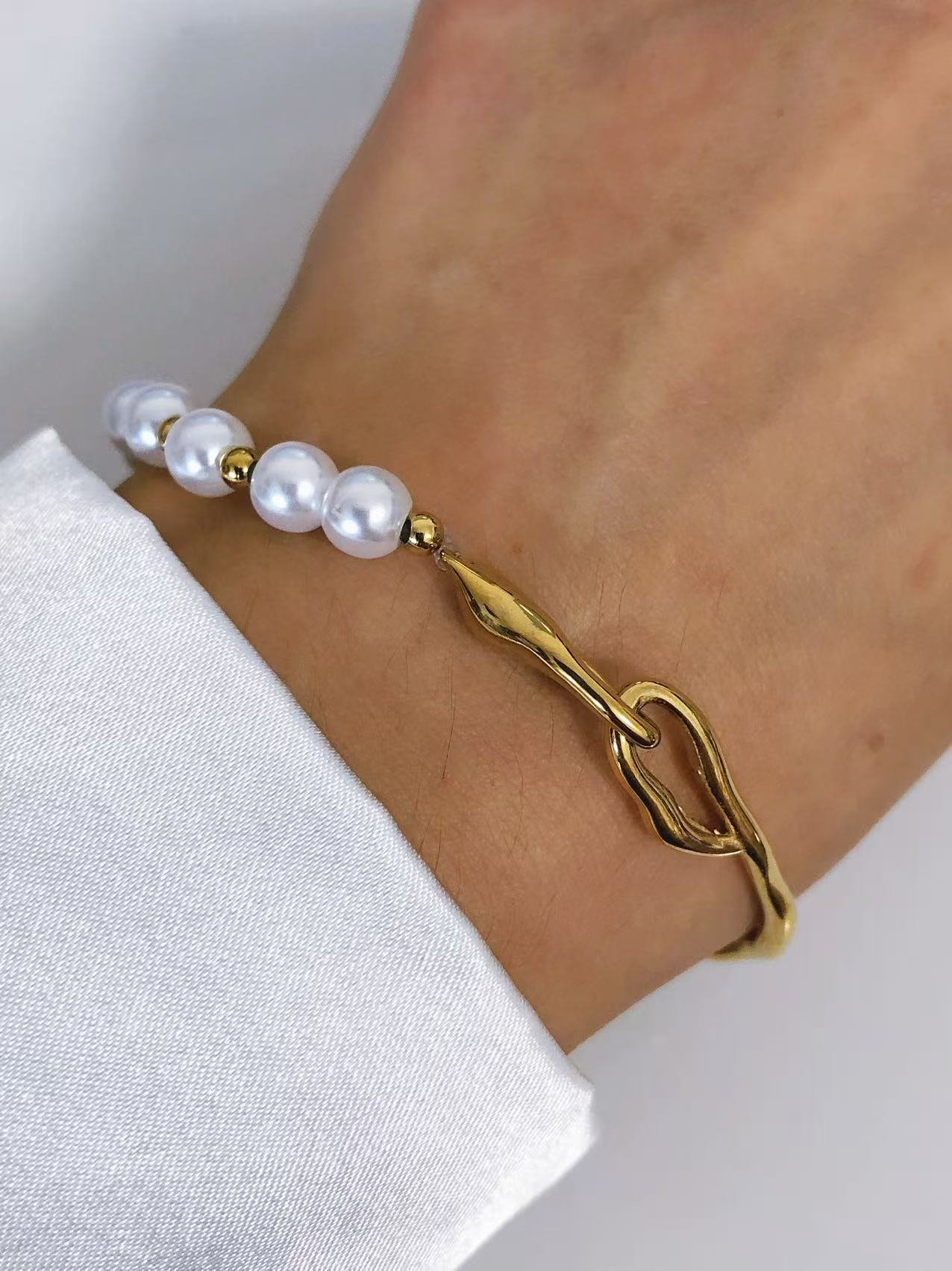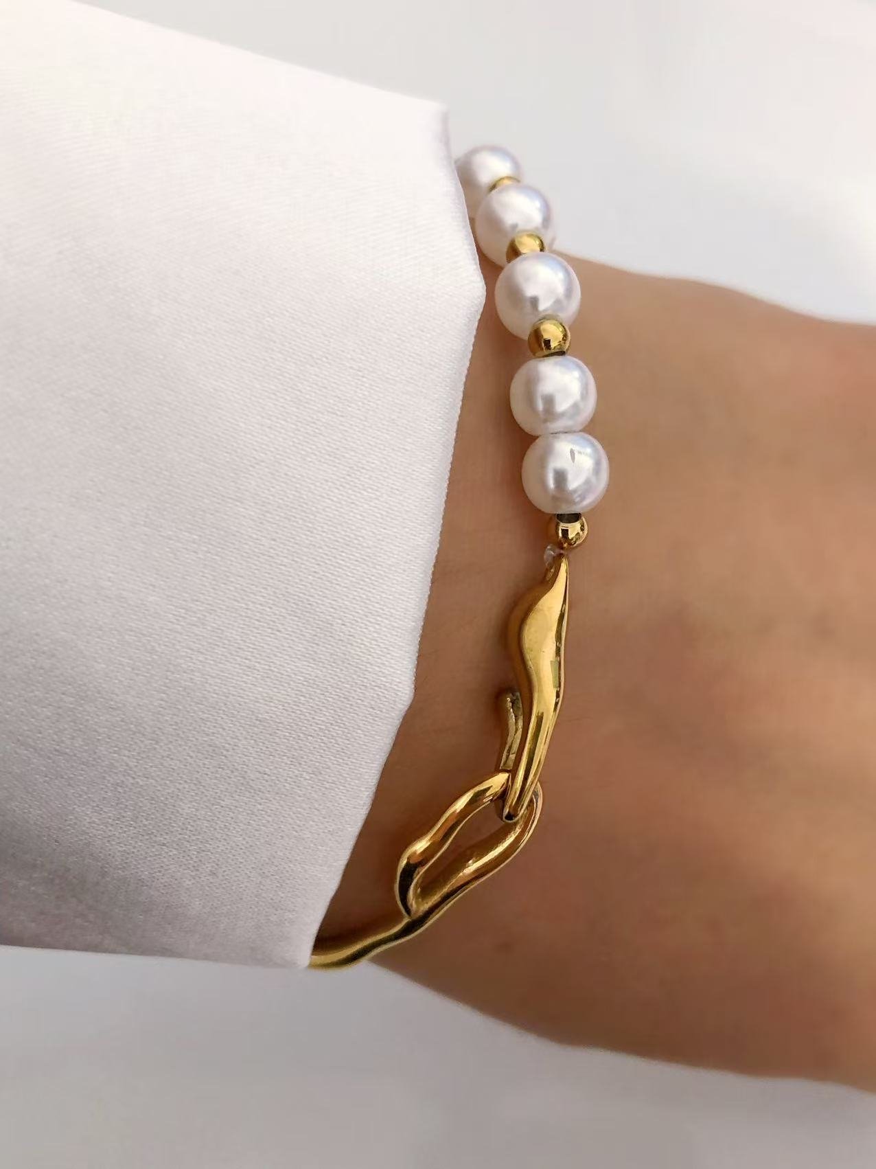 Discover the Tidal Grace Bracelet — luminous pearls meet sculpted 18K gold or silver curves. Tarnish-free, water-resistant, and effortlessly elegant.