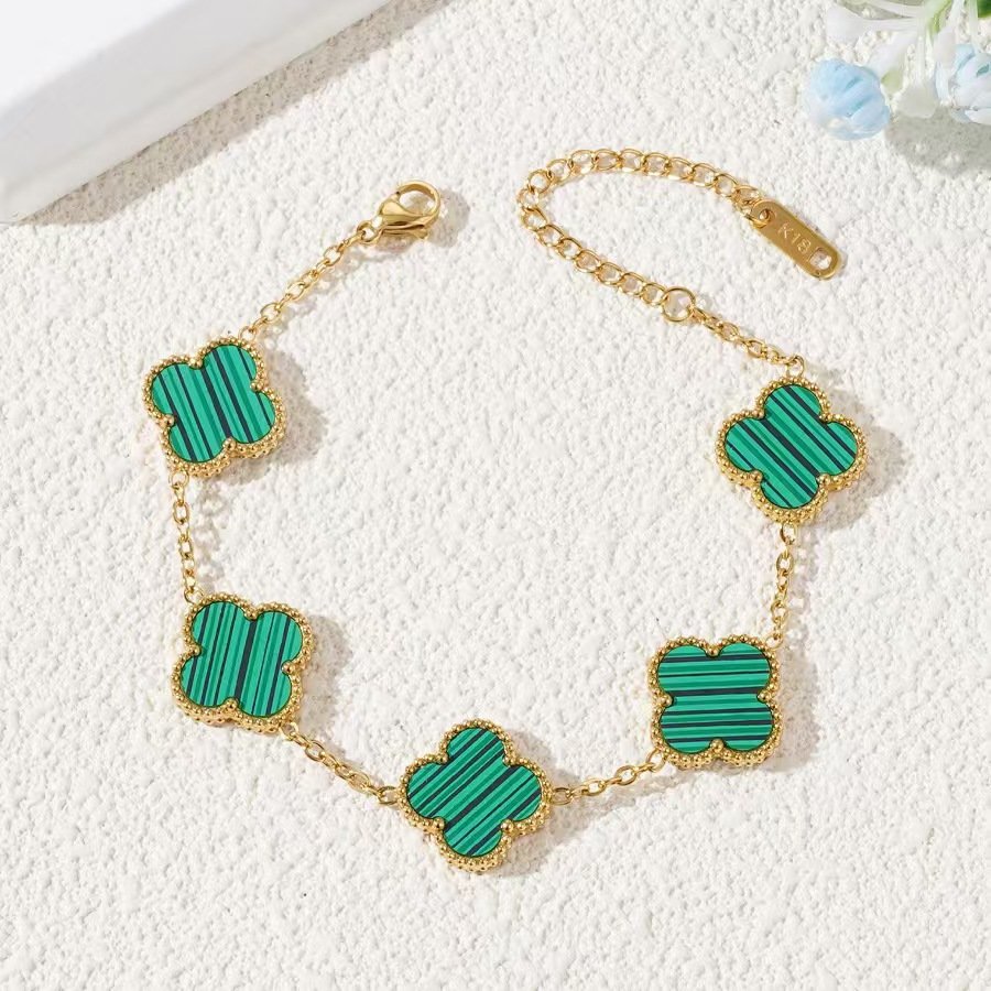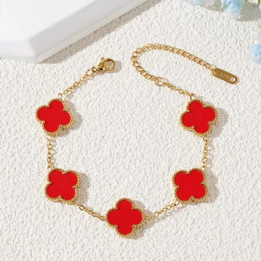 Classic 18K gold plated five clover bracelet in vibrant colors — tarnish-free, water-resistant titanium steel for iconic, lucky luxury!