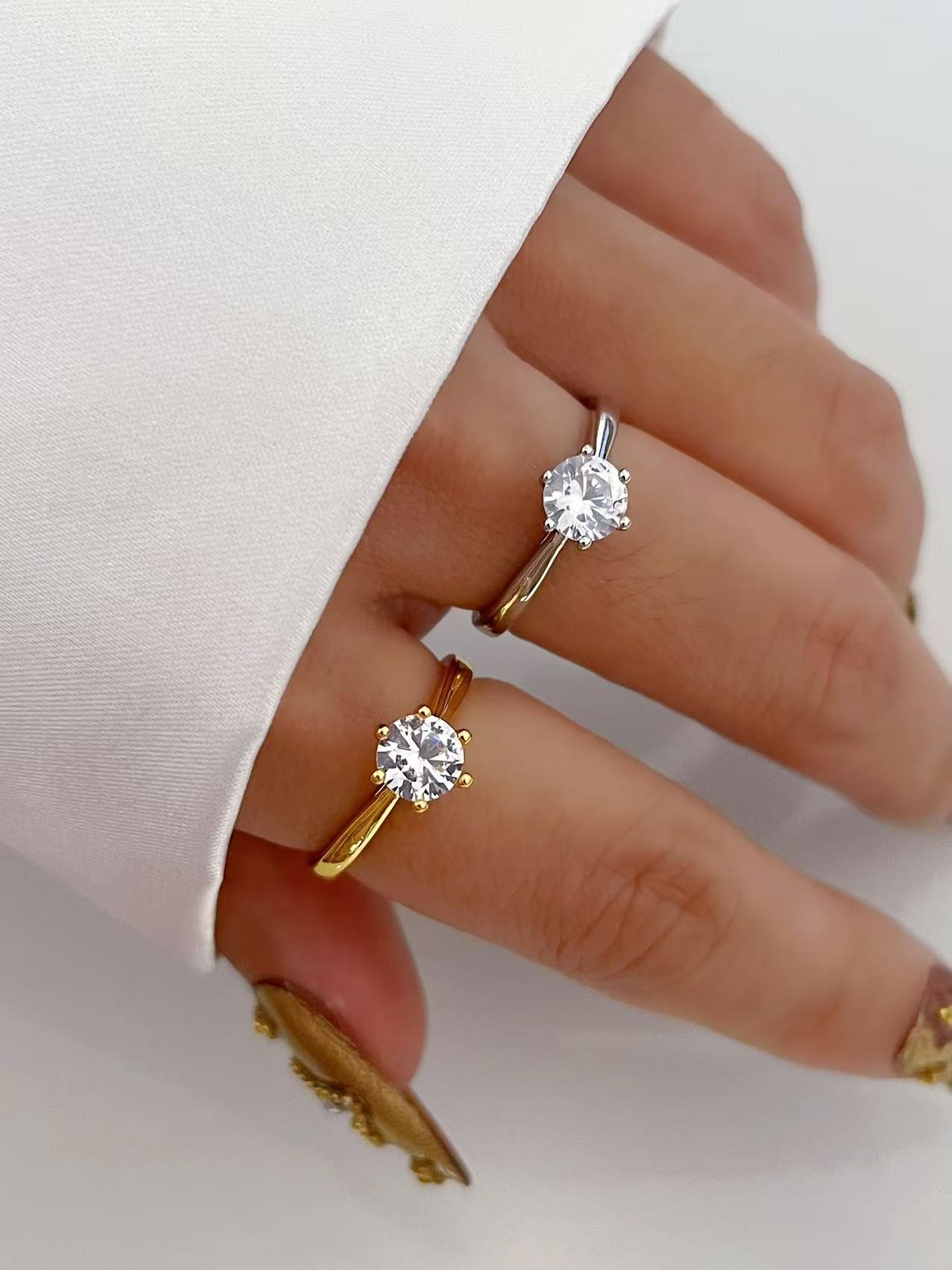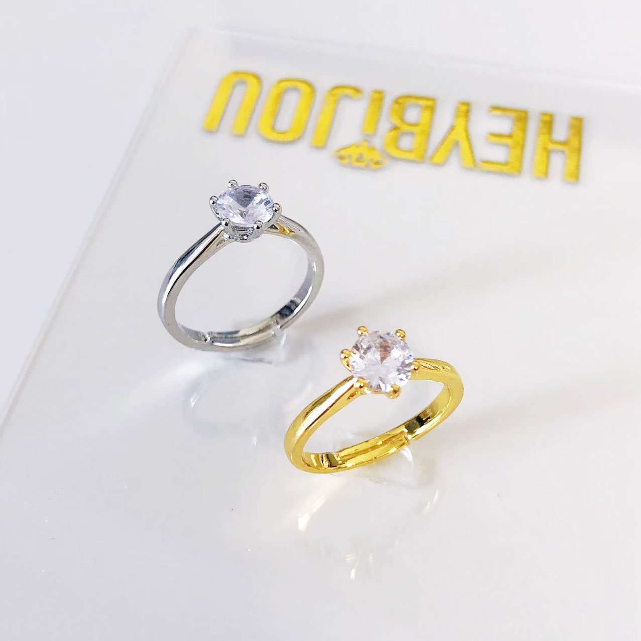 Classic forever: HEYBIJOU’s Timeless Prong—adjustable gold & silver solitaire diamond rings. Tarnish-free, waterproof—your vow-worthy vow now!