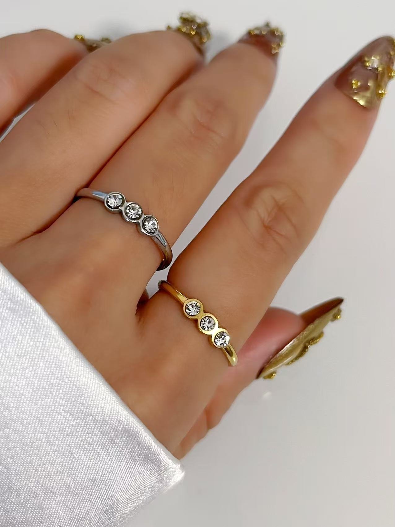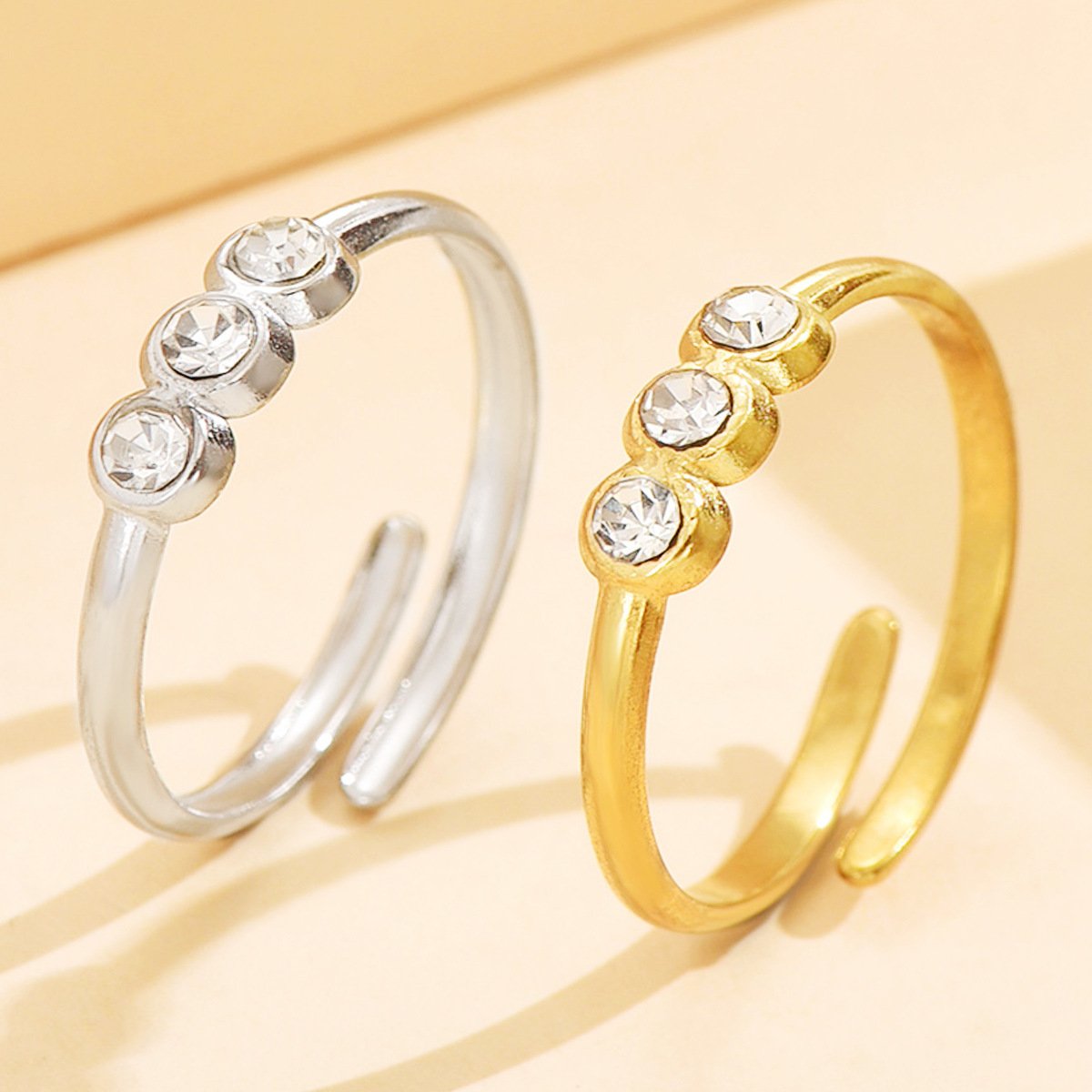 Minimal magic meets luxe: HEYBIJOU’s Trio Gleam—gold & silver open rings with 3 zircon inlays. Tarnish-free, waterproof—your subtle sparkle secret!