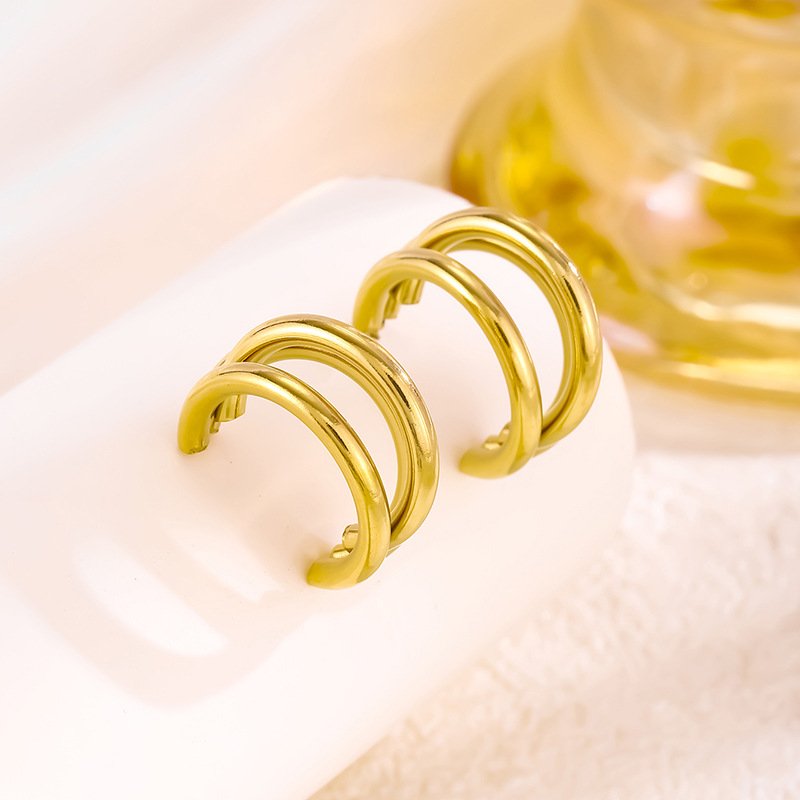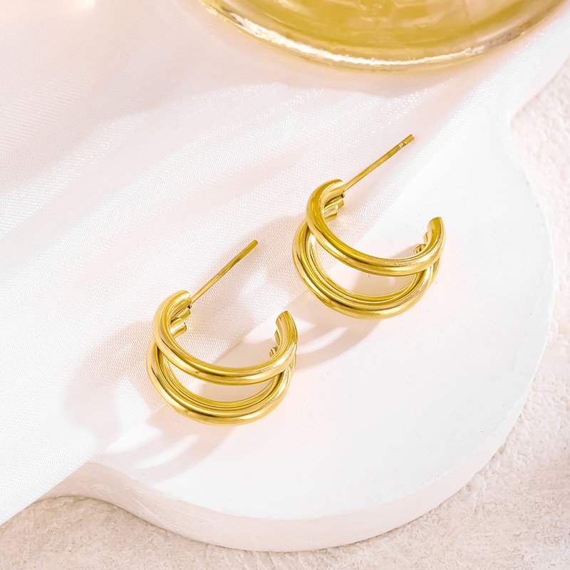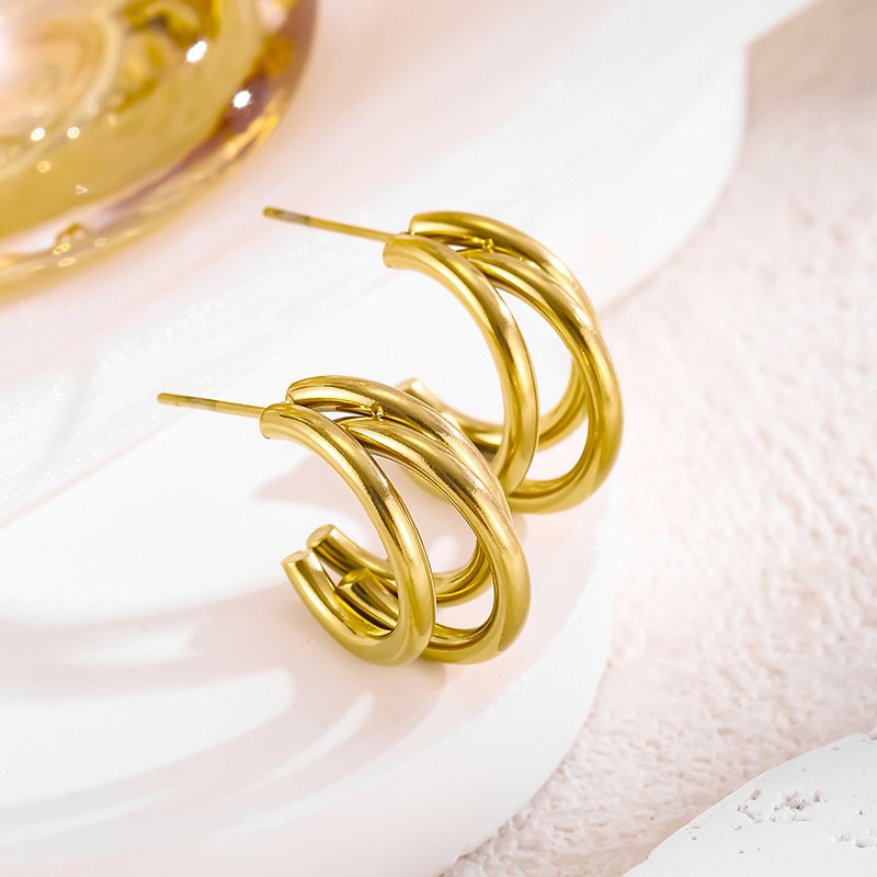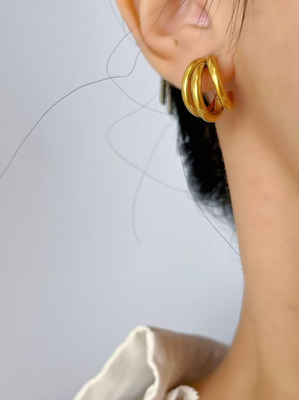 Unlock hypnotic luxury with HEYBIJOU Triple Arc Luxe Hoops—18K gold-plated, tarnish-free arcs that shimmer endlessly. Water-resistant elegance for bold, everyday sparkle!