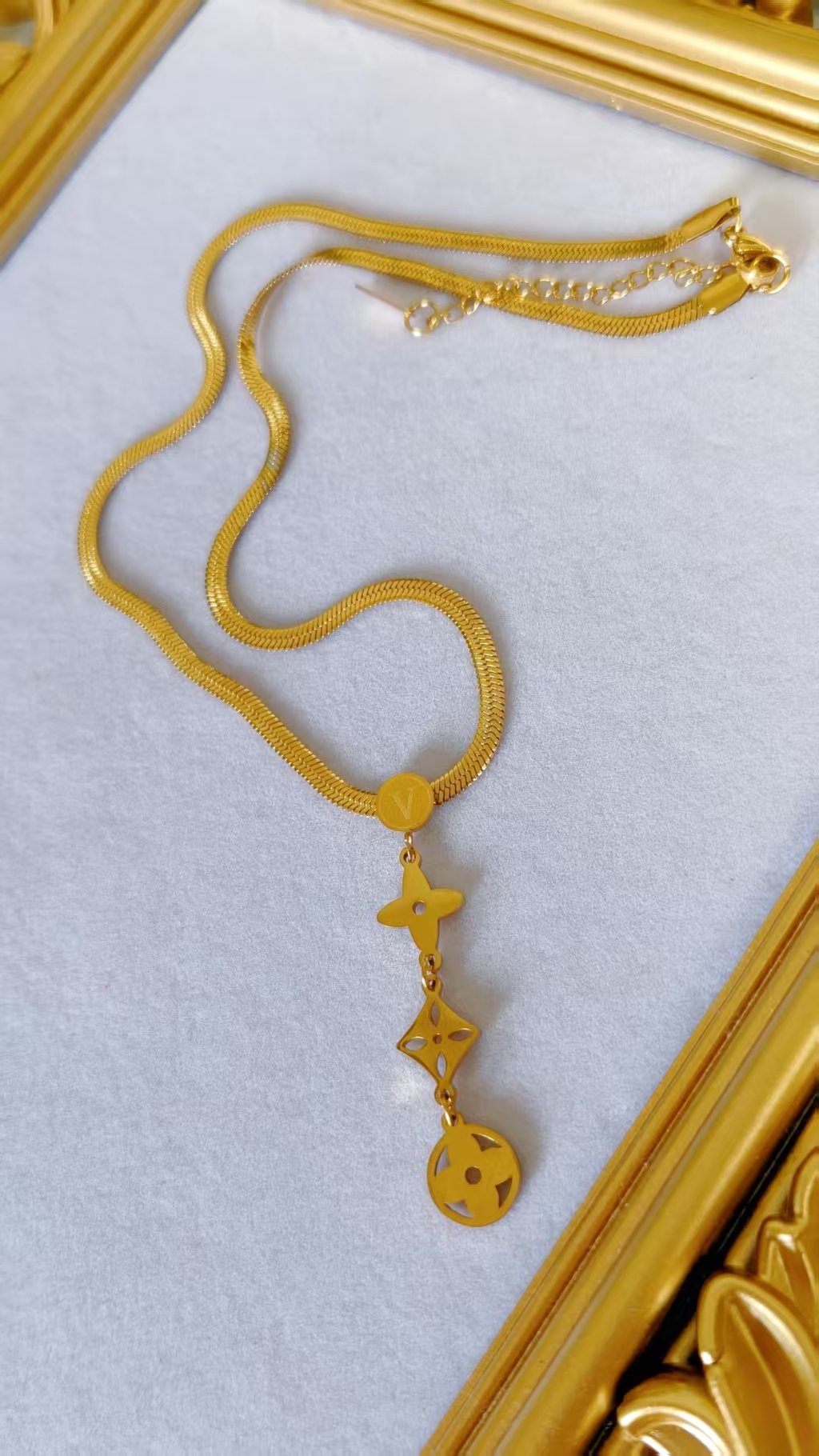 Crafted on a solid titanium steel base, this necklace is completely tarnish-free and fully water-resistant. The snake chain stays mirror-bright, the cutout charms stay crisp and clean, and the whole composition holds its stunning presence through every wear, every wash, and every season. Effortless durability wrapped in genuine luxury.