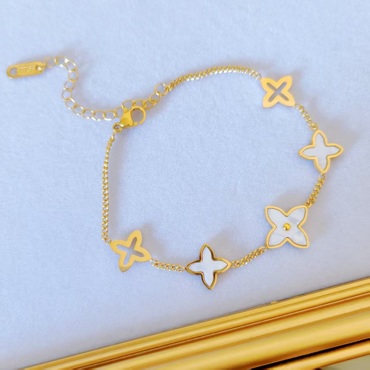 Handcrafted from premium titanium steel with luxurious 18K gold or silver plating and genuine iridescent shell inlays, this bracelet is built for endless wear. Tarnish-free and completely water-resistant, it effortlessly accompanies you through showers, beach days, workouts, or daily life while keeping the shell’s pearlescent glow and flawless metallic shine perfectly preserved. Hypoallergenic, lightweight, and finished with an adjustable extender for the ideal fit—pure luxury you can live in!