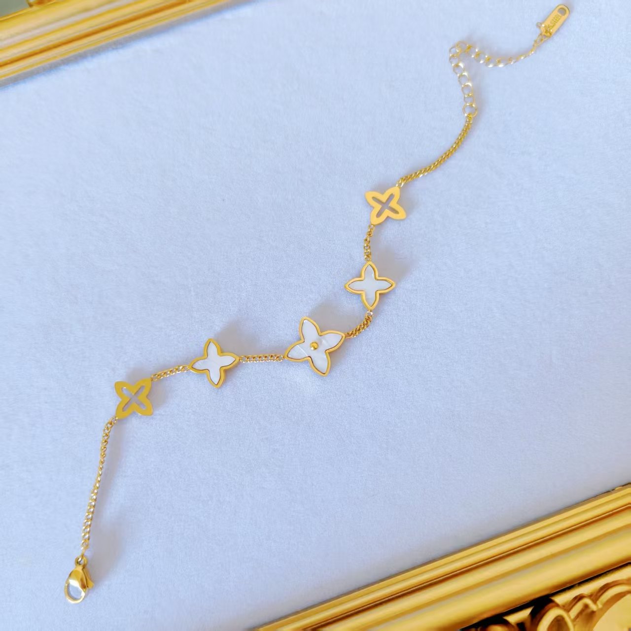 Adorn yourself with the enchanting Triple Clover Shell Station Bracelet from HEYBIJOU! Three delicate four-leaf clovers, each inlaid with shimmering natural white shell that catches light with every move, are gracefully stationed along a fine chain for a look that’s both whimsical and refined. Available in luminous 18K gold plating for sunny warmth or sleek silver plating for modern coolness—this lucky trio brings high-end charm and a sprinkle of fortune to your every gesture!