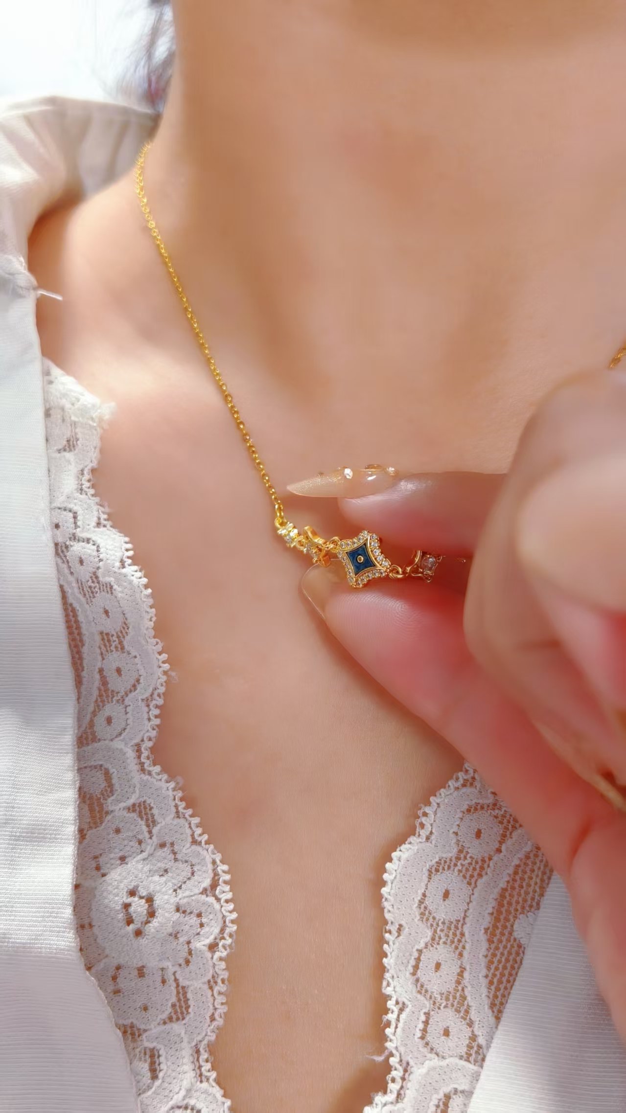 The Velvet Sky Necklace occupies a rare aesthetic space — it is simultaneously edgy and elegant, dark and dazzling, structured and deeply romantic. It elevates a simple white tee into an outfit. It adds intrigue to an all-black evening look. It makes any neckline feel intentional. Layer it with a longer pendant for a deeply curated editorial stack, or let it command attention completely solo — this pendant needs no supporting cast.