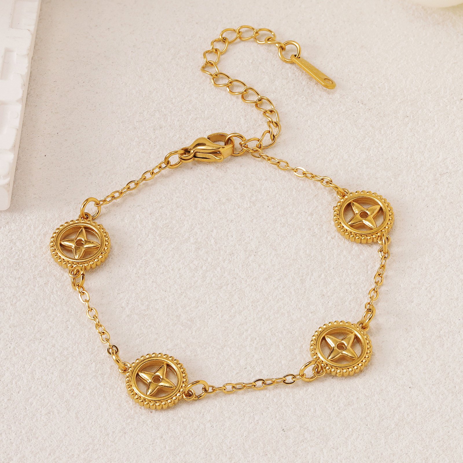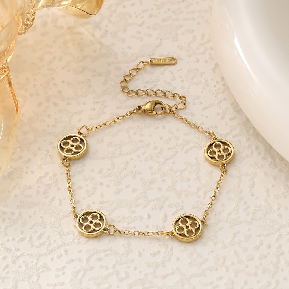 Elegant 18K gold plated vintage clover station bracelet — tarnish-free, water-resistant titanium steel with heirloom-inspired motifs for timeless luxury!
