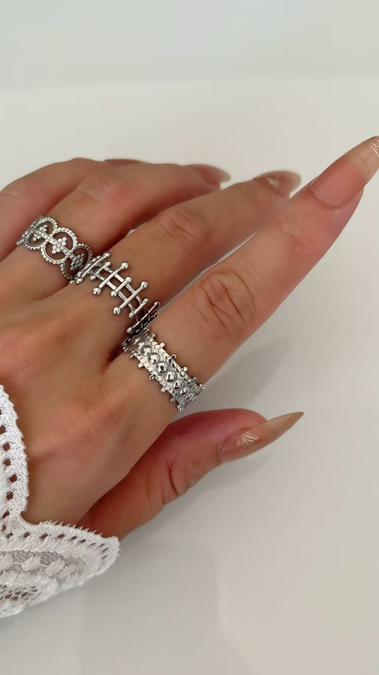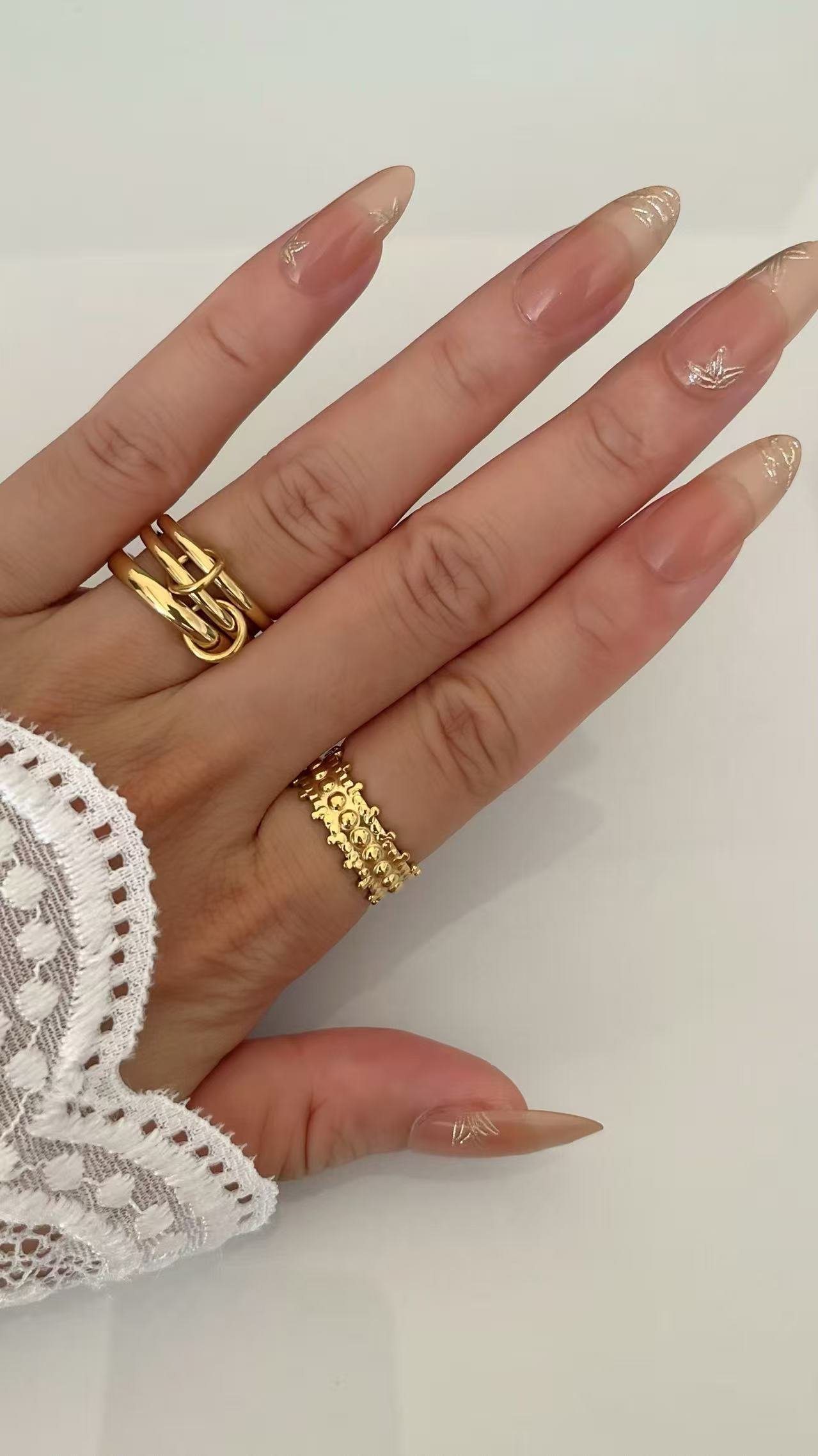 Vintage Palace Bubble Open Ring in 18k Gold/Silver. Wide statement band with textured bubbles. Tarnish-free titanium steel. Royal elegance!