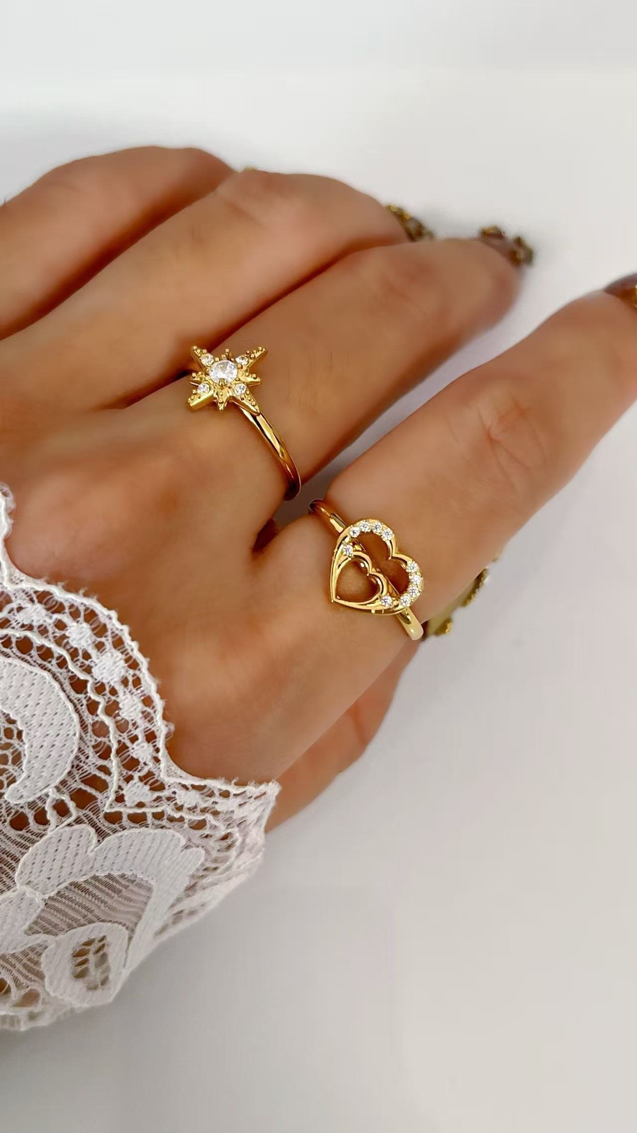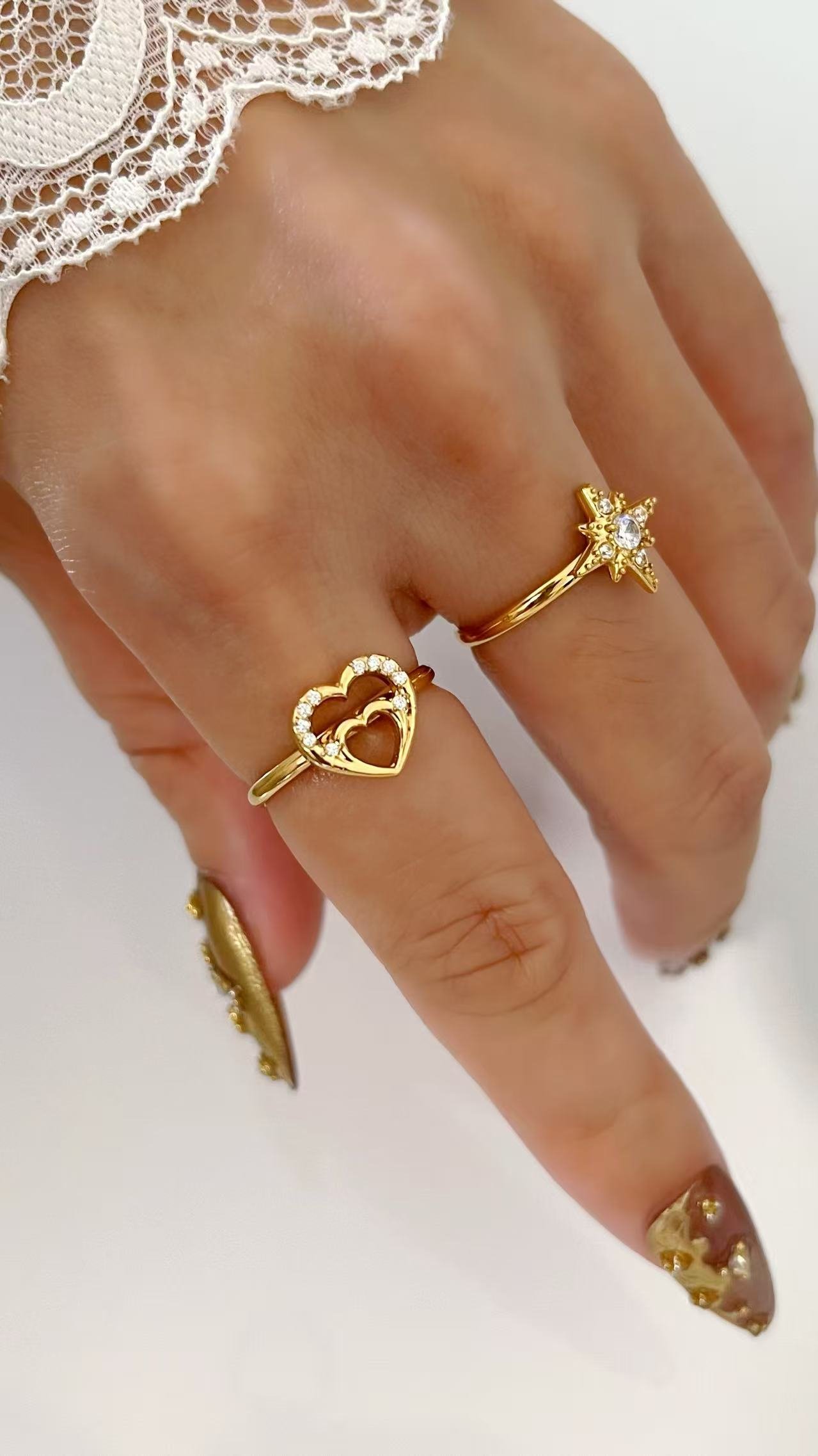 Fall in love with HEYBIJOU Zircon Heart Embrace Ring—18K gold-plated open cuff with zircon hearts on titanium steel. Tarnish-free, water-resistant romance for fingers that flutter!