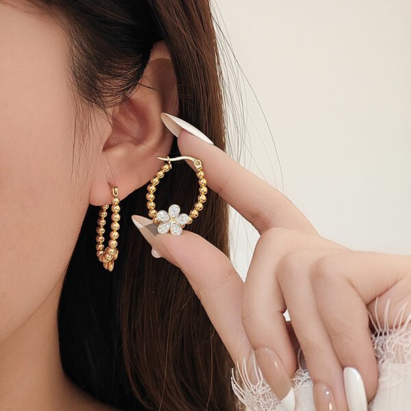 Beaded Gold Flower Hoop Earrings