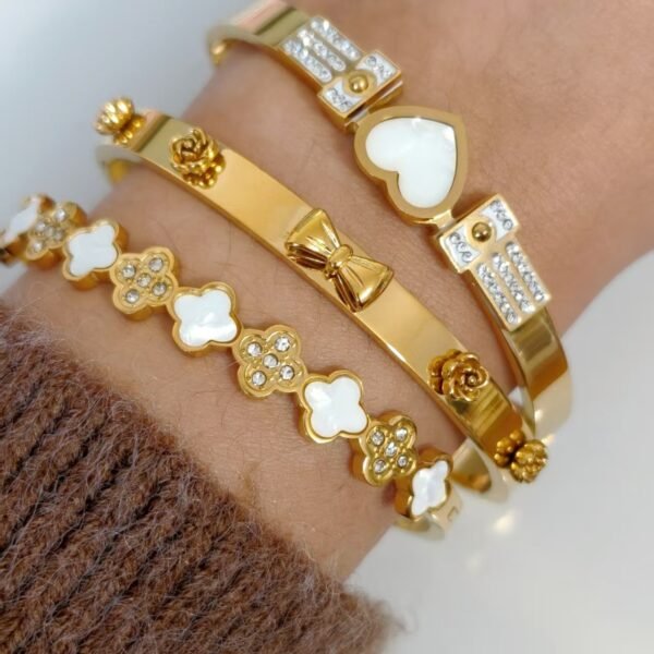 Clover Shell Zircon Bangle