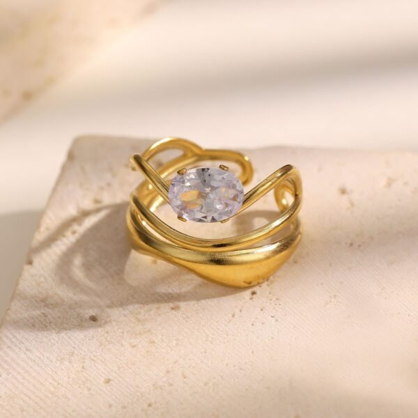 Golden Triple Gem Orbit Open Ring