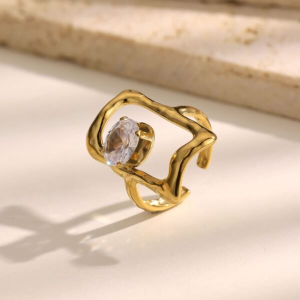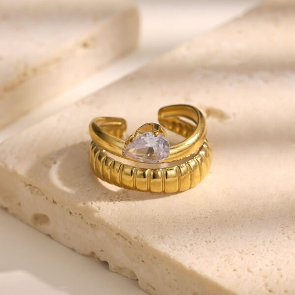 Golden Dual-Heart Zircon Open Ring