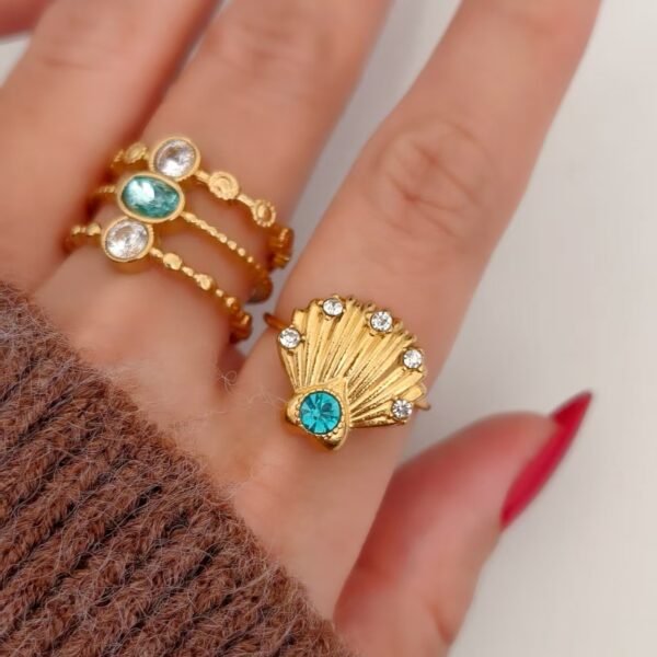 Golden Turquoise Seashell Zircon Jewelry Set