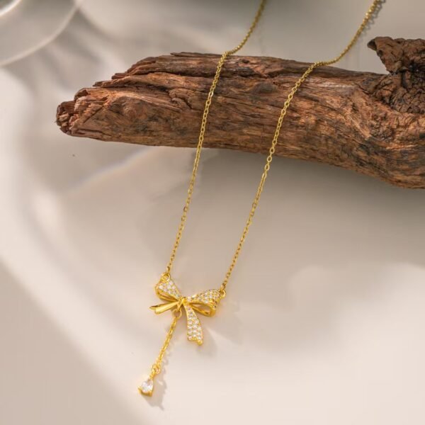 Sparkling Zircon Bow Drop Necklace